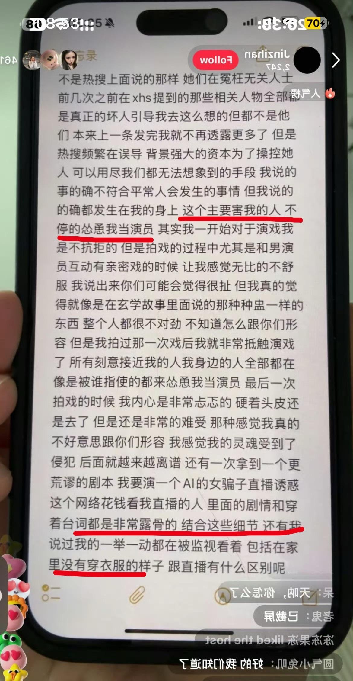 2,被要求出演露骨的AI女骗子直播诱惑剧本,称自己的一举一动(包括在家隐私)都被全程监视。