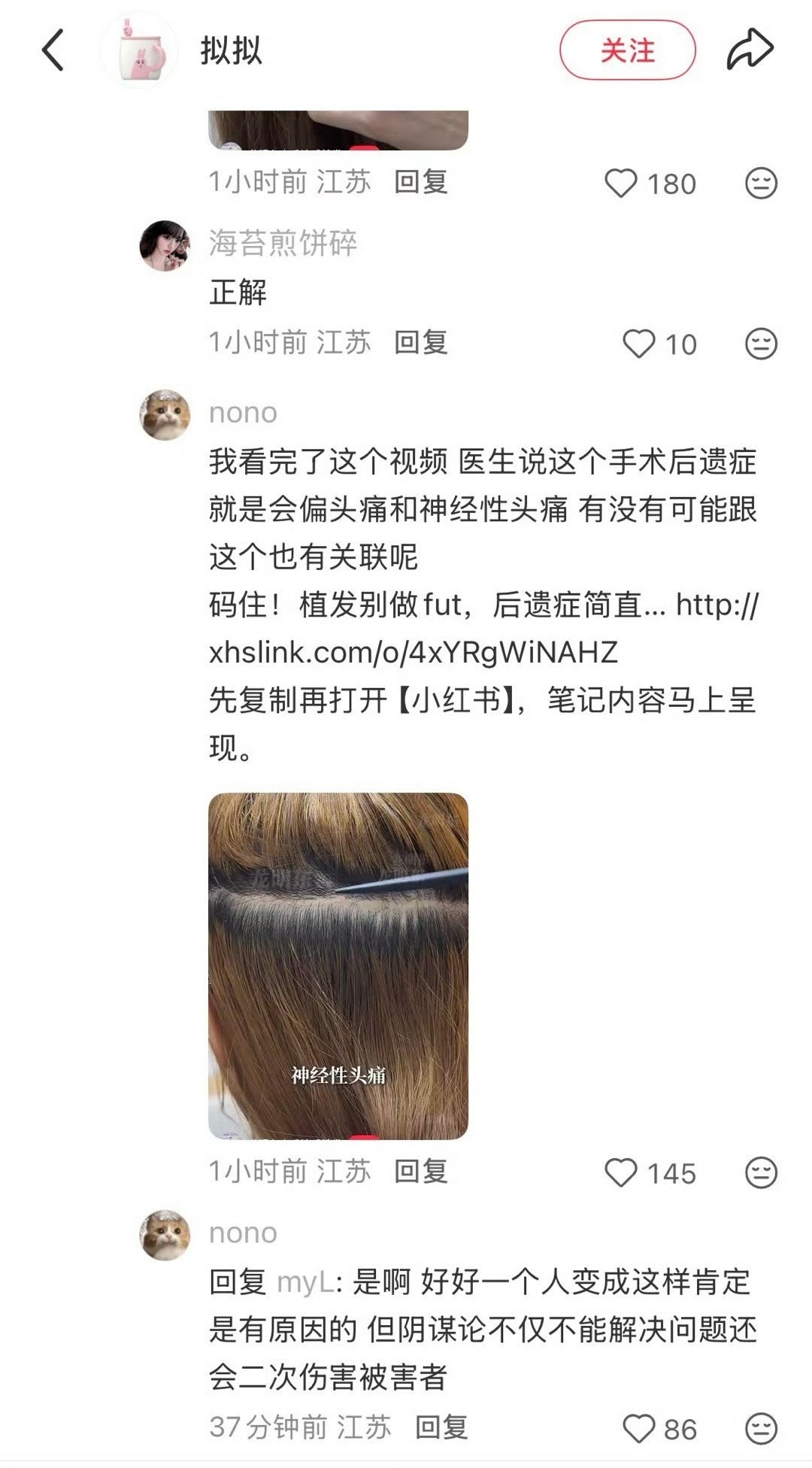 5,也有人怀疑她是植发之后引发的偏头痛。(图7-9)