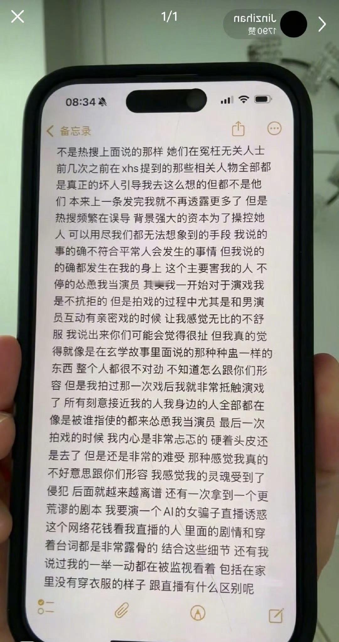 3,拍戏时因亲密戏产生强烈不适,说身边人指使怂恿她当演员。