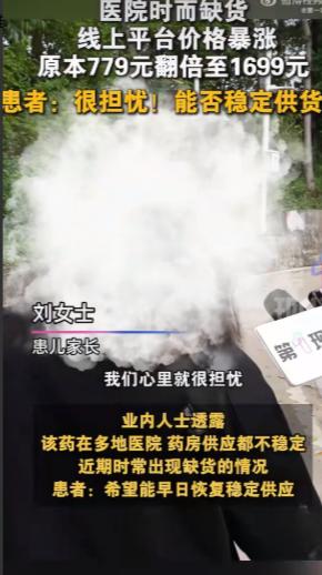 可如今,医院断货,线上电商平台和一些零售药房里,这款药的价格一路飙升,最高涨到了三千多元一支,涨幅超过四倍。一支药最多能用半个月,按照每天两次的用量,一个月的药费就要六七千元,长期下来,没有哪个普通家庭能扛得住。