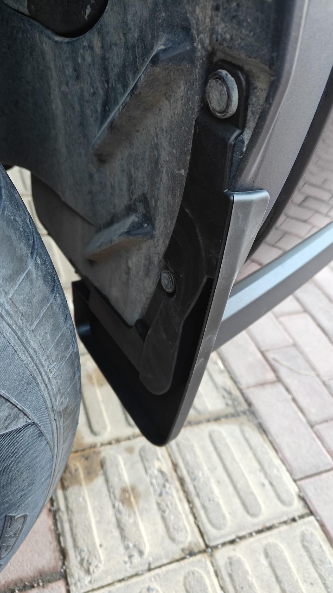 在我安装完固定踏板以后,前轮会把泥沙甩到踏板上面,开车门有时都会咯吱咯吱响。所以买了四个小挡泥板,安装很简单,三个卡扣或者中间有一个螺丝,无损安装。