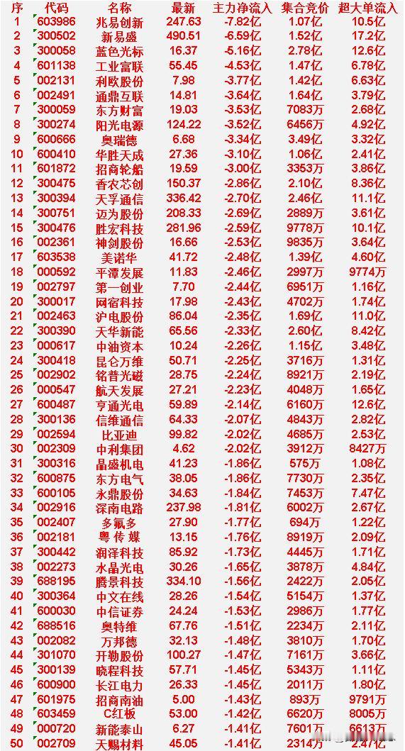 开盘45分钟,主力“卖出的 ”50名单!