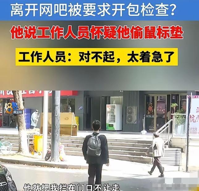 男子走出网吧后,站在路边准备打车前往上班地点,还没等他叫到车,网吧老板就带着一名员工追了出来,径直拦住了他。两人神色严肃,明确表示怀疑男子偷了网吧的鼠标垫,要求男子打开随身携带的背包,让他们检查,以此自证清白。