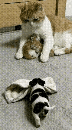 猫妈妈收留了刚离开母亲的小奶狗,真是太有爱了。小狗可怜巴巴的看向家里的猫,嘴里叼着毯子慢慢向猫靠近,令人惊讶的是猫妈妈伸出爪子拉过它的毯子温柔的接纳了它,让它和几只小猫一起趴在母猫身边真是太有爱了。这只小狗是刚抱回家的离开了大狗很不习惯一直很羡慕的看着带着几只小猫的母猫,怀念曾经拥有的母爱,所以壮着胆子想靠近它们真没想到还被接纳了。