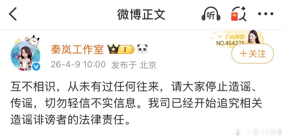 金子涵否认是秦岚秦岚工作室声明秦岚工作室回应热搜:与金子涵互相不认识