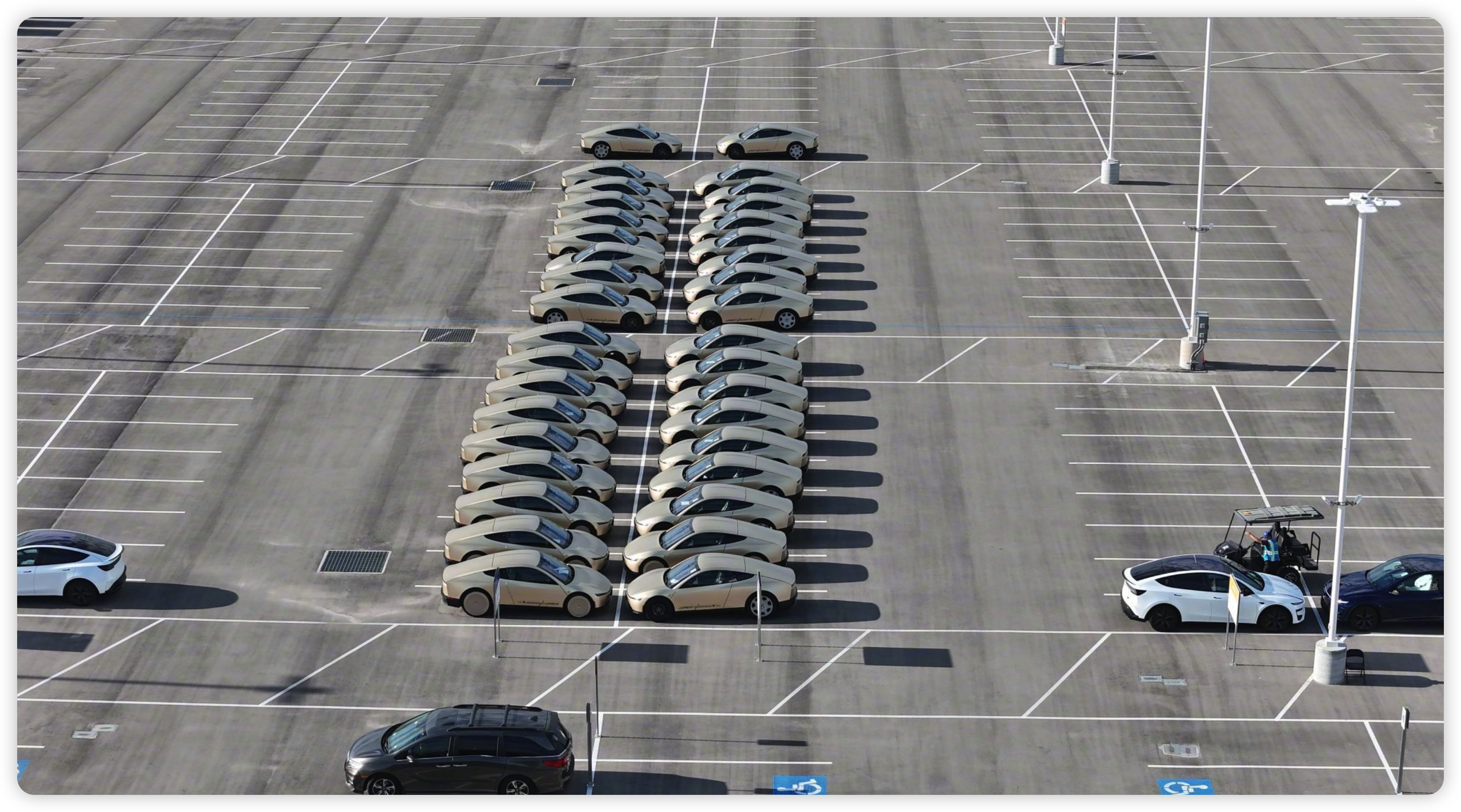 特斯拉Cybercab开启量产 德州工厂直接拍到 60 台 Cybercab,量产实锤了!不过有意思的是,看图二,这批车全都带方向盘,和之前马斯克说的 “无方向盘、无踏板” 完全不一样。