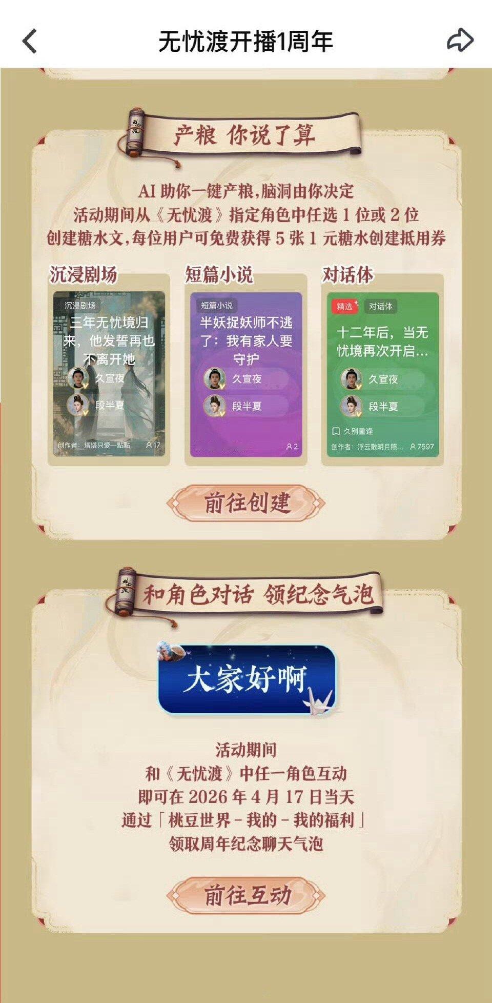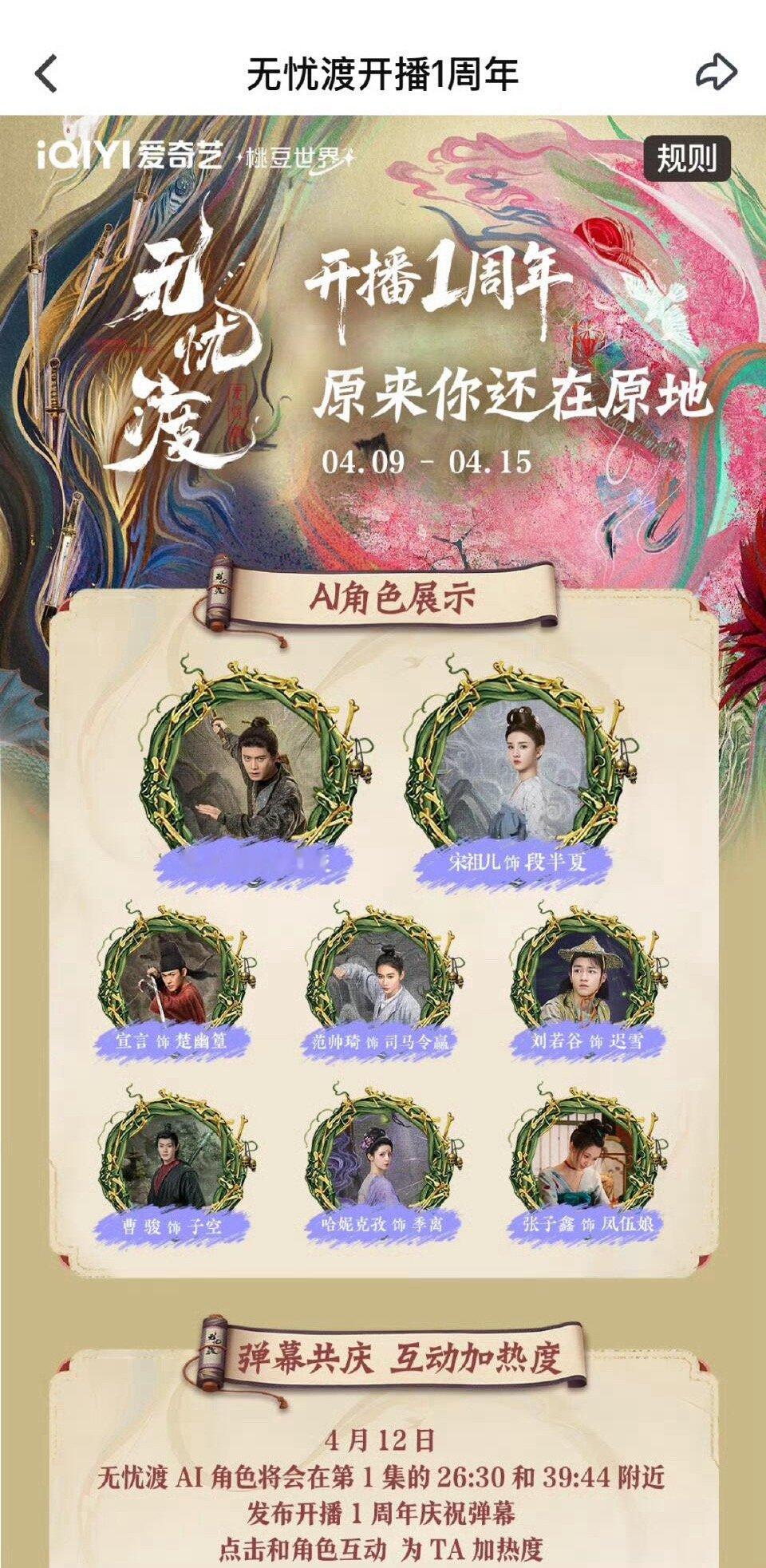 这才是真爆剧排面爱奇艺为任嘉伦《无忧渡》举办了开播一周年活动,和AI角色互动还蛮有趣的~