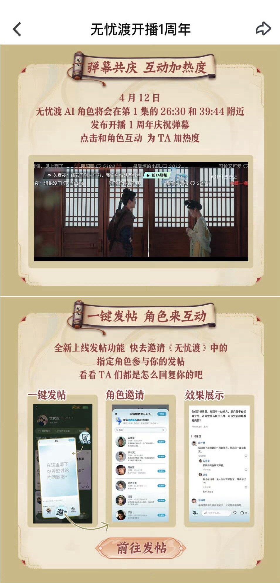 这才是真爆剧排面爱奇艺为任嘉伦《无忧渡》举办了开播一周年活动,和AI角色互动还蛮
