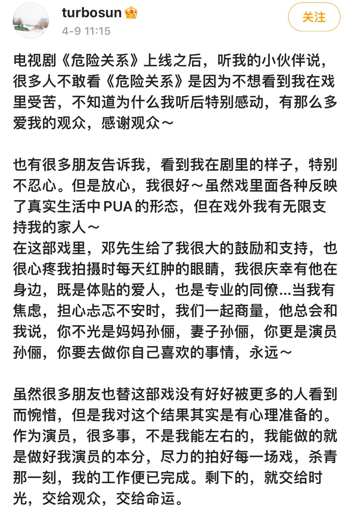 邓超鼓励孙俪做自己喜欢的事孙俪发长文感谢观众心疼孙俪在剧里的痛也谈了接下这部《危