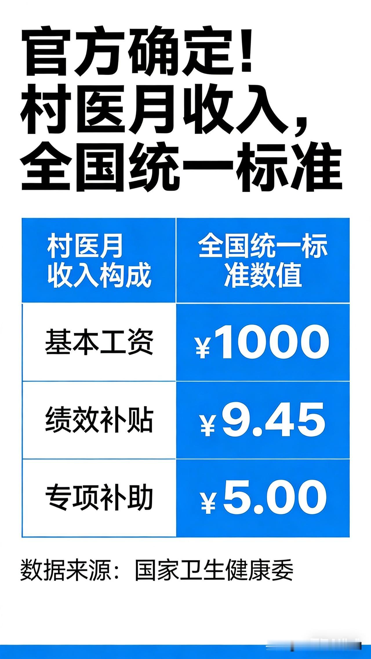 这是国家首次明确村医收入全国统一标准,从“看天吃饭”转向“财政兜底+绩效激励”,既筑牢基层医疗网底,也让扎根乡村的健康守护者安心履职、体面生活。