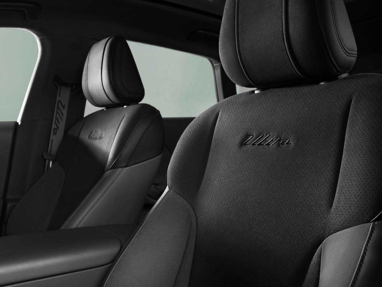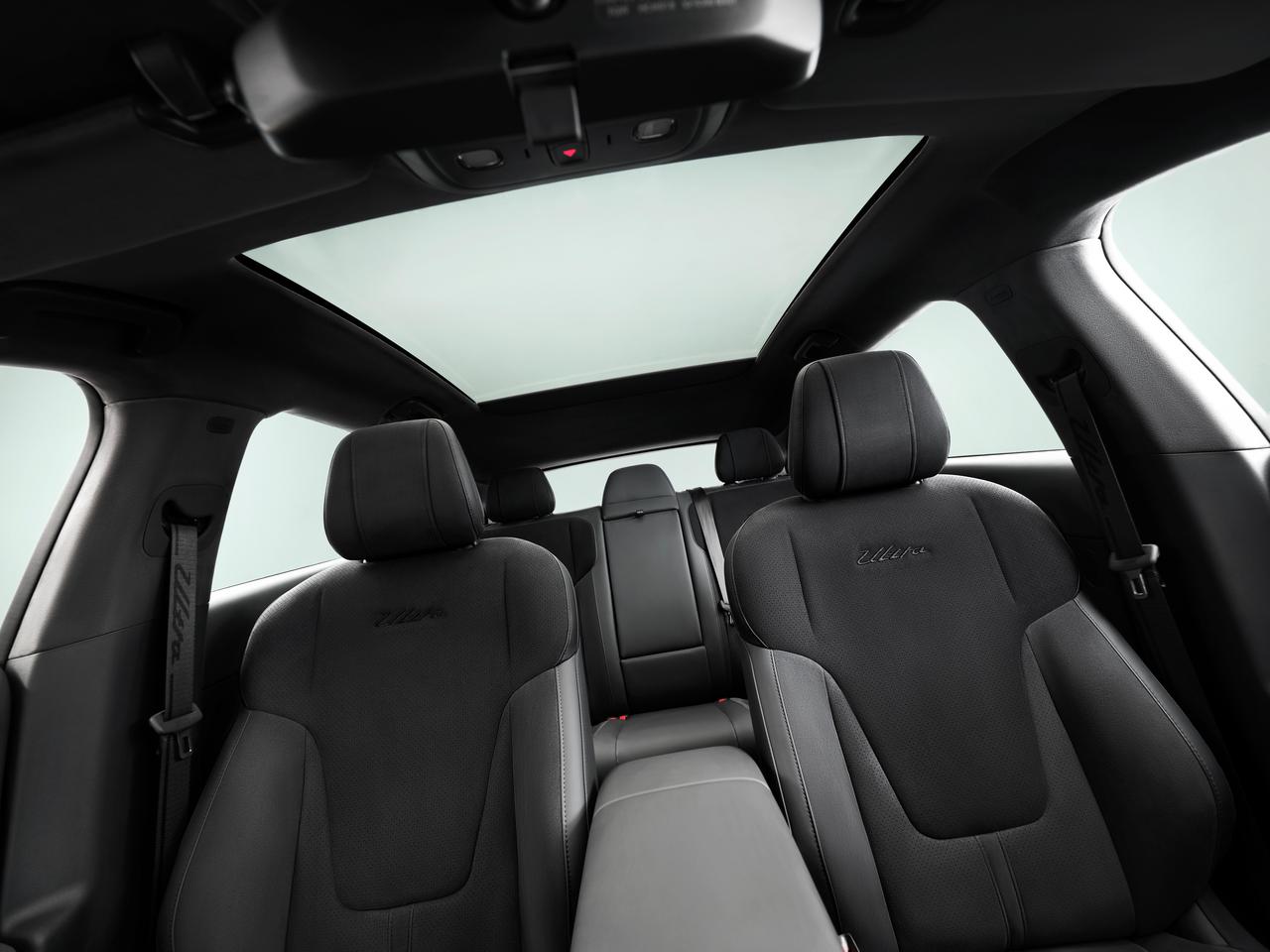 逐风灰仿麂皮内饰温柔承托着身体,材质细腻且富有阻尼感;配套的仿麂皮运动座椅侧翼包裹贴合,椅背上精致的Ultra刺绣、专属运动装饰条,搭配车身同色系的Ultra印花安全带,藏着满满的专属感。