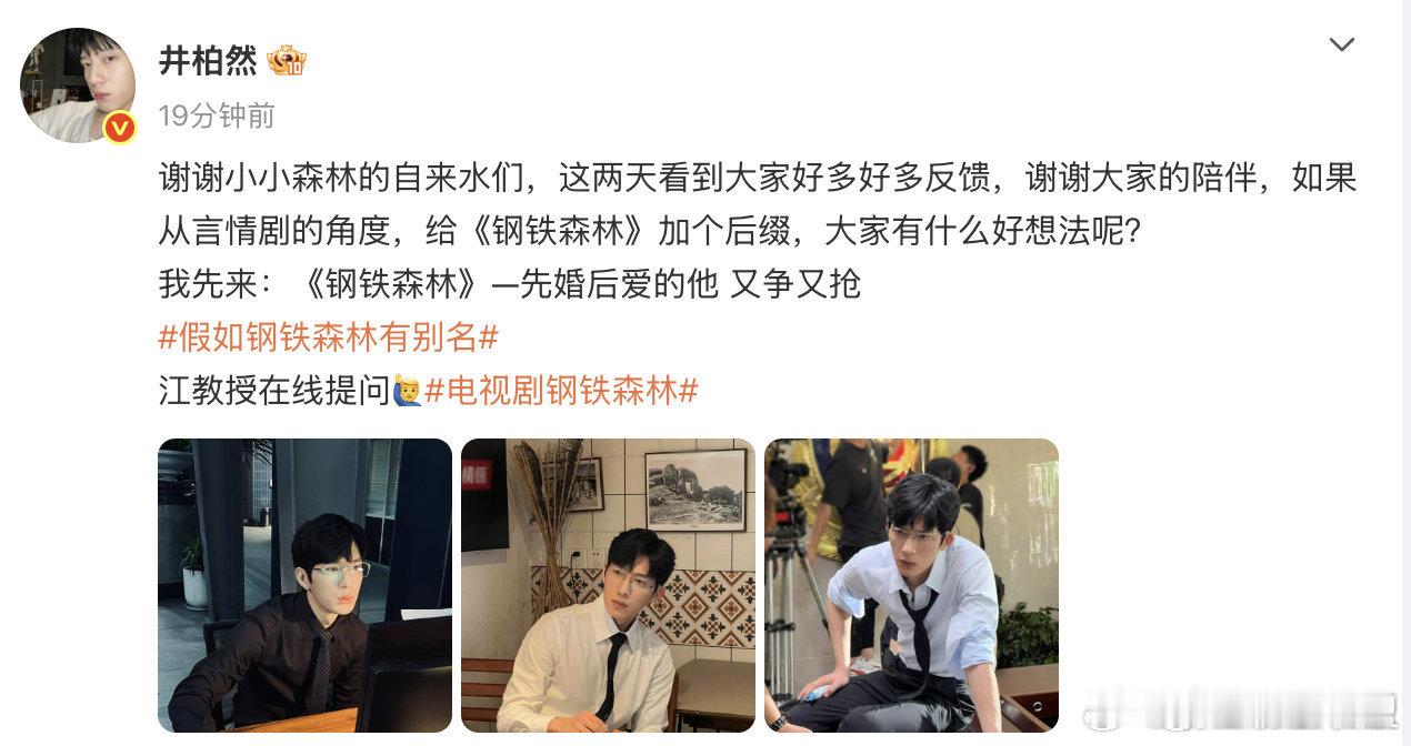 井柏然还是忘不了先婚后爱 “先婚后爱的他 又争又抢”“江寒声骄傲且自卑的希望周瑾有朝一日爱上的是优秀的自己 ,而不是他曾经默默的付出 ,这也是他对周瑾偏执占有欲的一部分野心” 敞开心扉跟大家聊角色的内心戏,wuli小井这次真的为江寒声拼过命惹!井柏然给钢铁森林征名