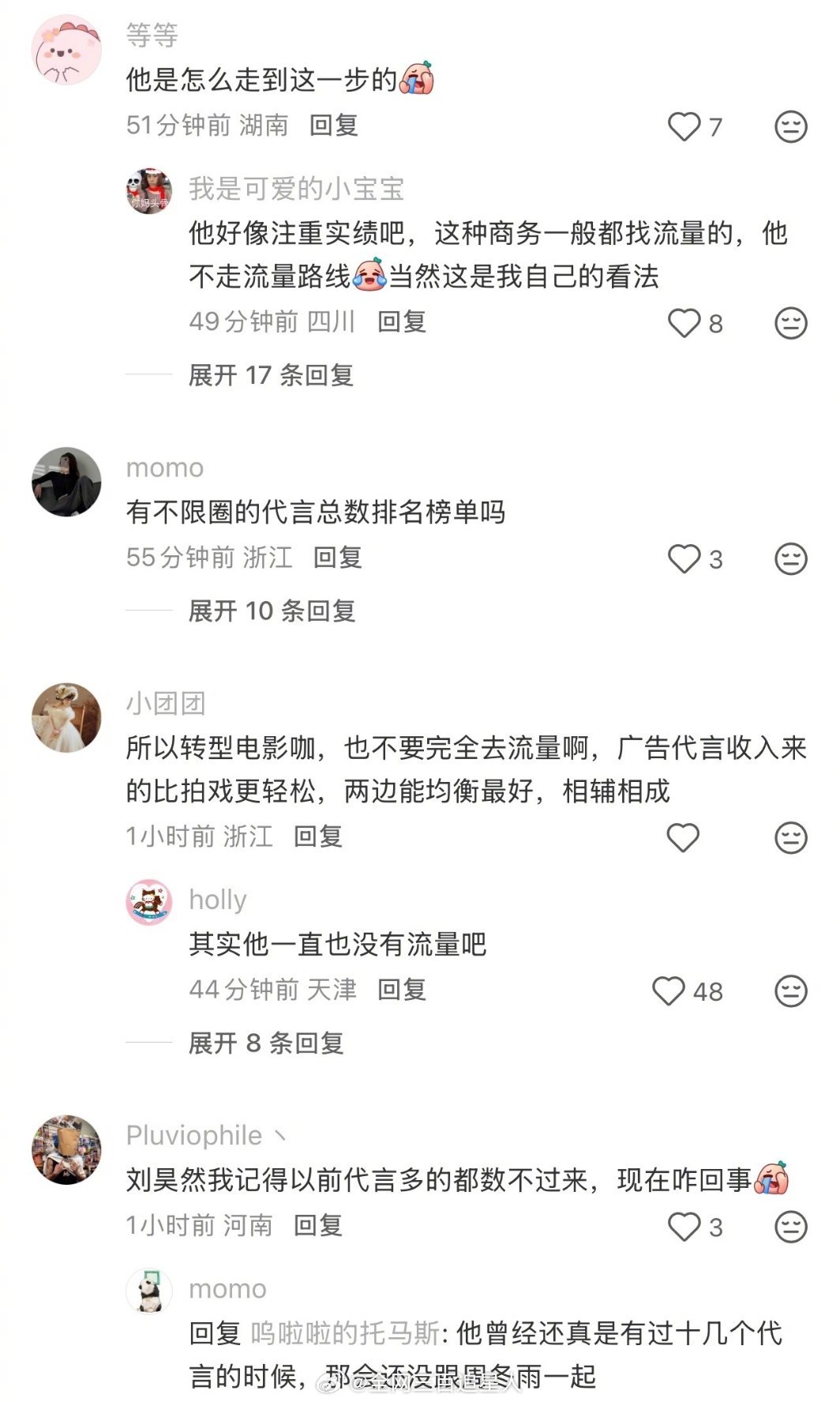 刘昊然商务就剩两个了?