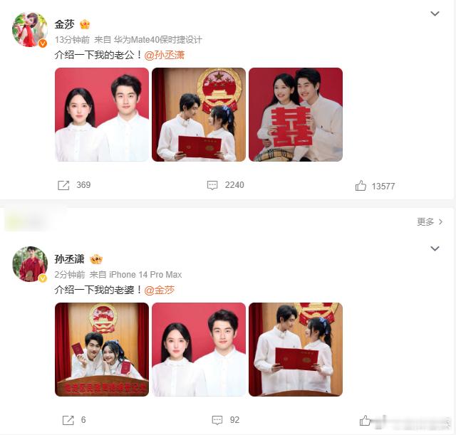 金莎孙丞潇官宣领证金莎老公孙丞潇《妻子的浪漫旅行》金莎孙丞潇官宣领证!!金莎:介绍一下我的老公孙丞潇,孙丞潇:介绍一下我的老婆金莎,好浪漫啊,恭喜有情人终成眷属