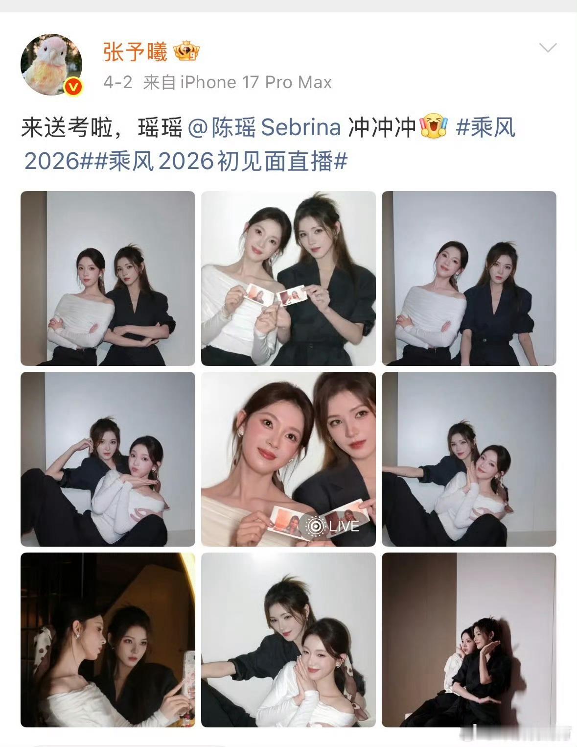 陈瑶送考张予曦之前予曦送瑶妹去乘风,现在瑶妹又来为予曦的合伙人加油打气,美女之间