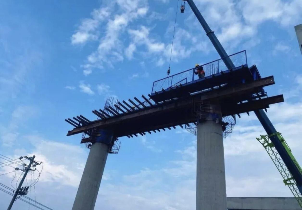 清明过后,天气仍多变幻。项目团队利用降雨间歇见缝插针推进施工,在部分路基段,工人正进行水稳层铺设,压路机紧随其后反复碾压;桥梁工区则加速进行盖梁浇筑,混凝土通过长长的泵管精准注入模具,工人们手持振捣棒细致作业。