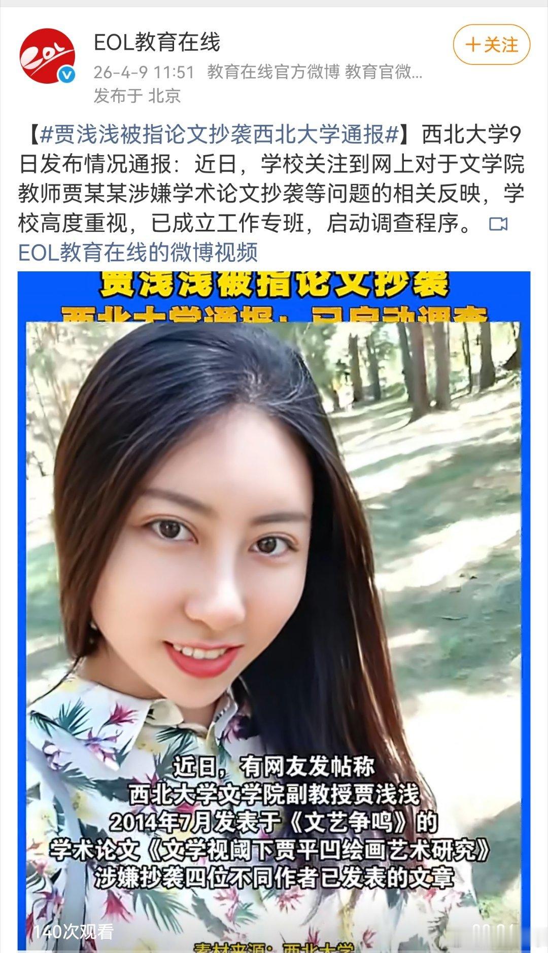 西北大学启动对涉嫌抄袭“屎尿屁诗人”贾浅浅调查 贾浅浅的贾平凹依赖症何时休