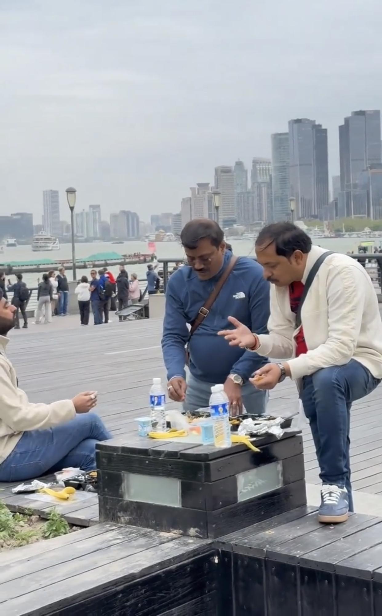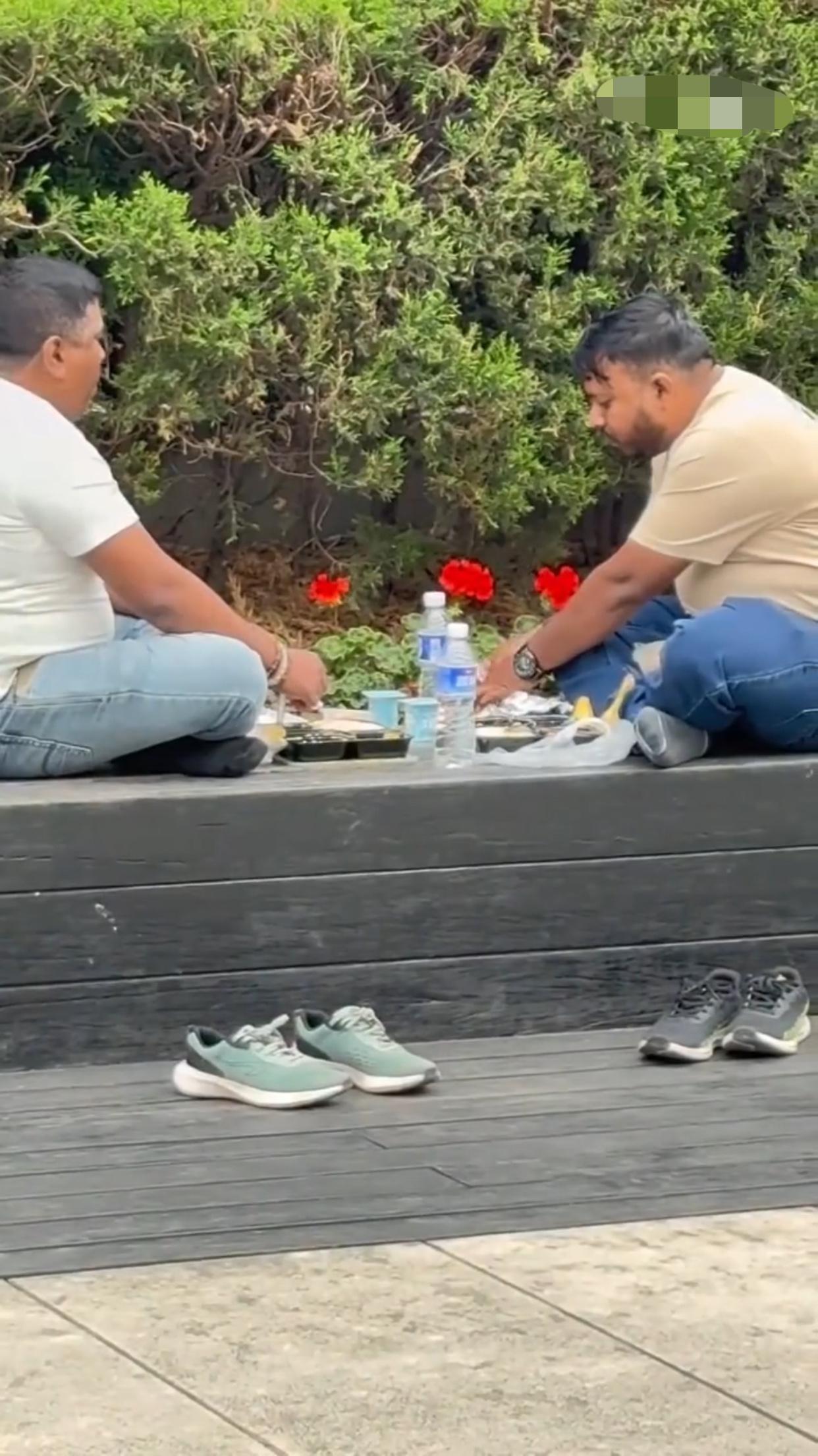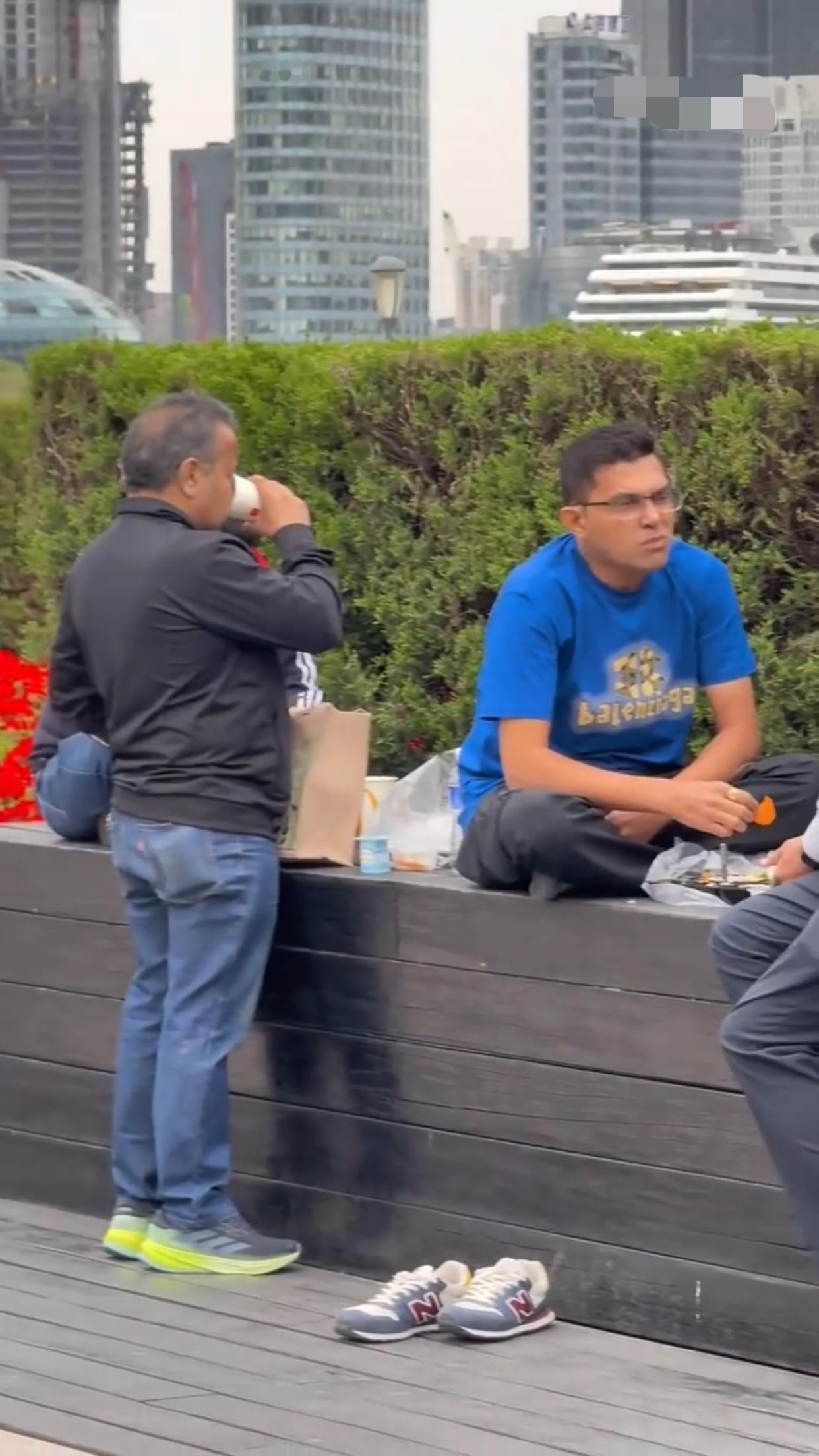 一些印度人来中国上海旅游,在欣赏上海外滩的风景时,他们自己也成为了“独特”的风景。 只见这些印度人两三人一起,脱鞋后盘坐在路边的公共座椅上,直接用手抓起饭菜来吃,似乎非常享受,印度人到哪里都有保留着他们的吃饭习俗呀。