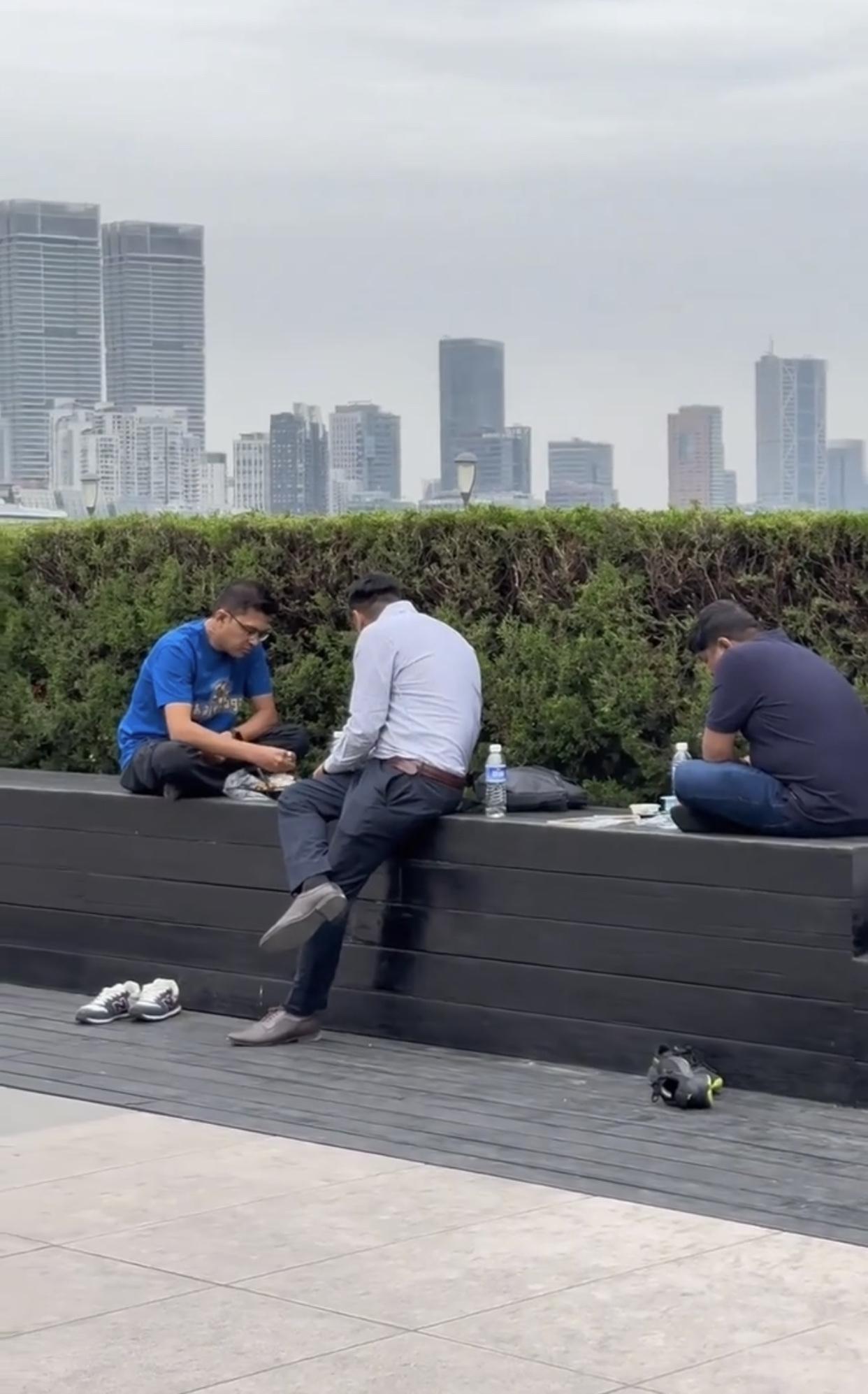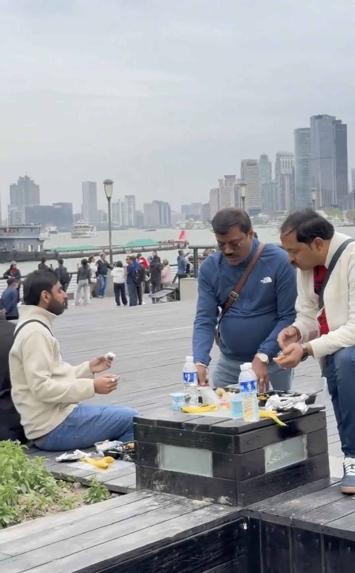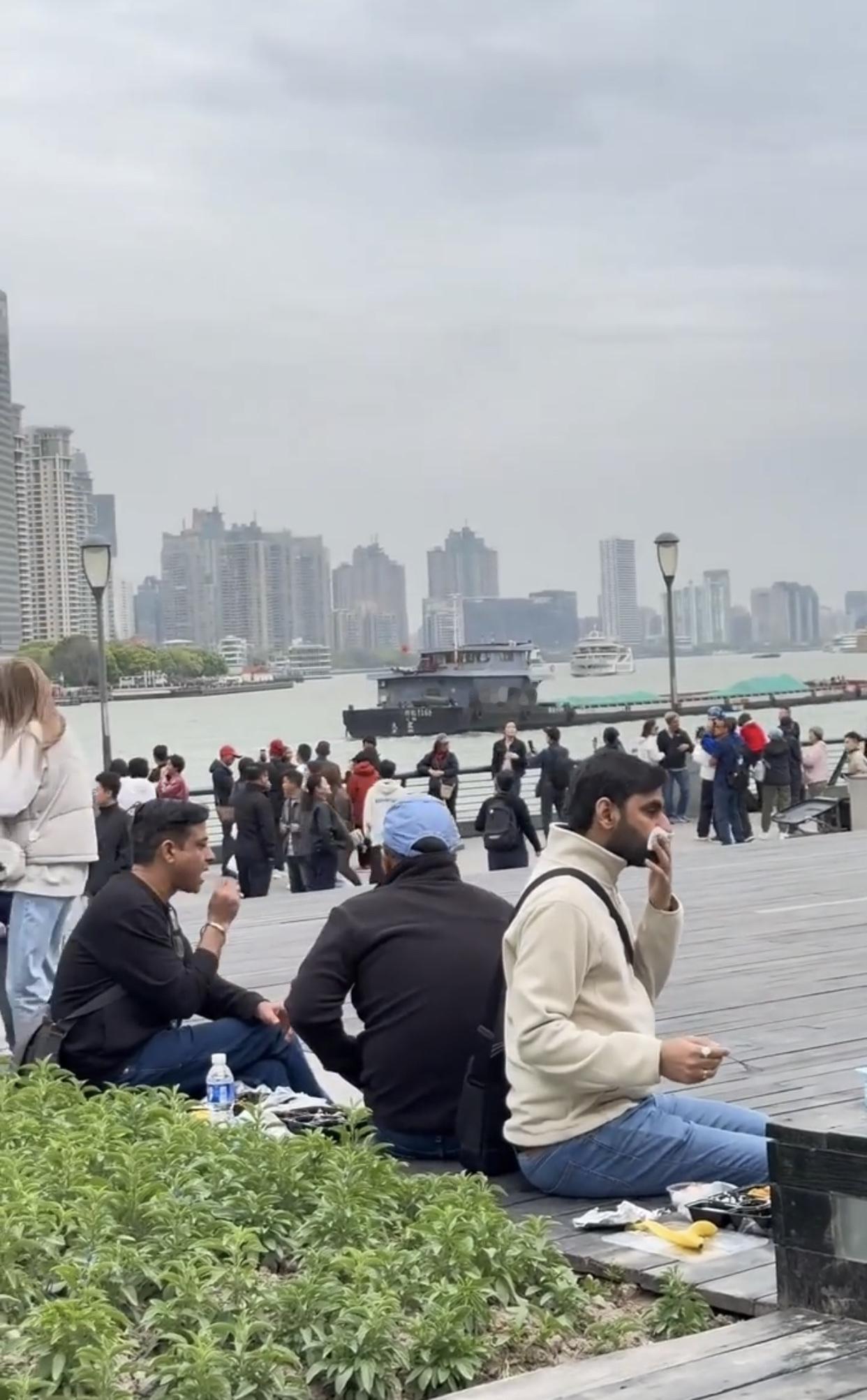一些印度人来中国上海旅游,在欣赏上海外滩的风景时,他们自己也成为了“独特”的风景。 只见这些印度人两三人一起,脱鞋后盘坐在路边的公共座椅上,直接用手抓起饭菜来吃,似乎非常享受,印度人到哪里都有保留着他们的吃饭习俗呀。
