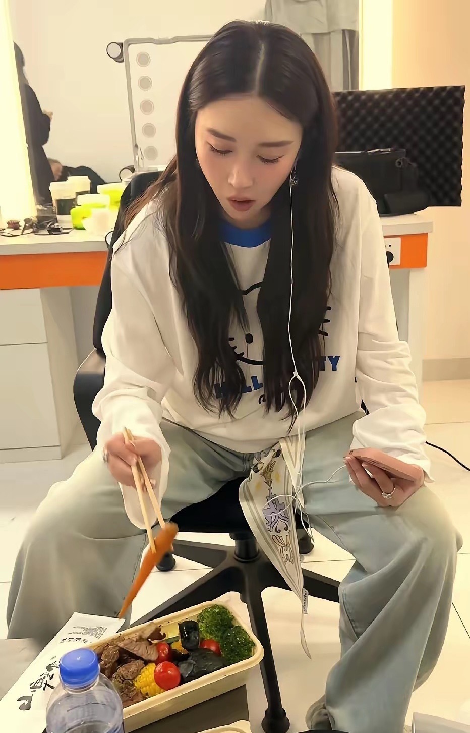 阚清子姐姐这减脂餐也太真实了!化妆间里直接开吃,牛肉、西兰花、小番茄、玉米,全是低卡高蛋白,难怪身材一直这么能打!