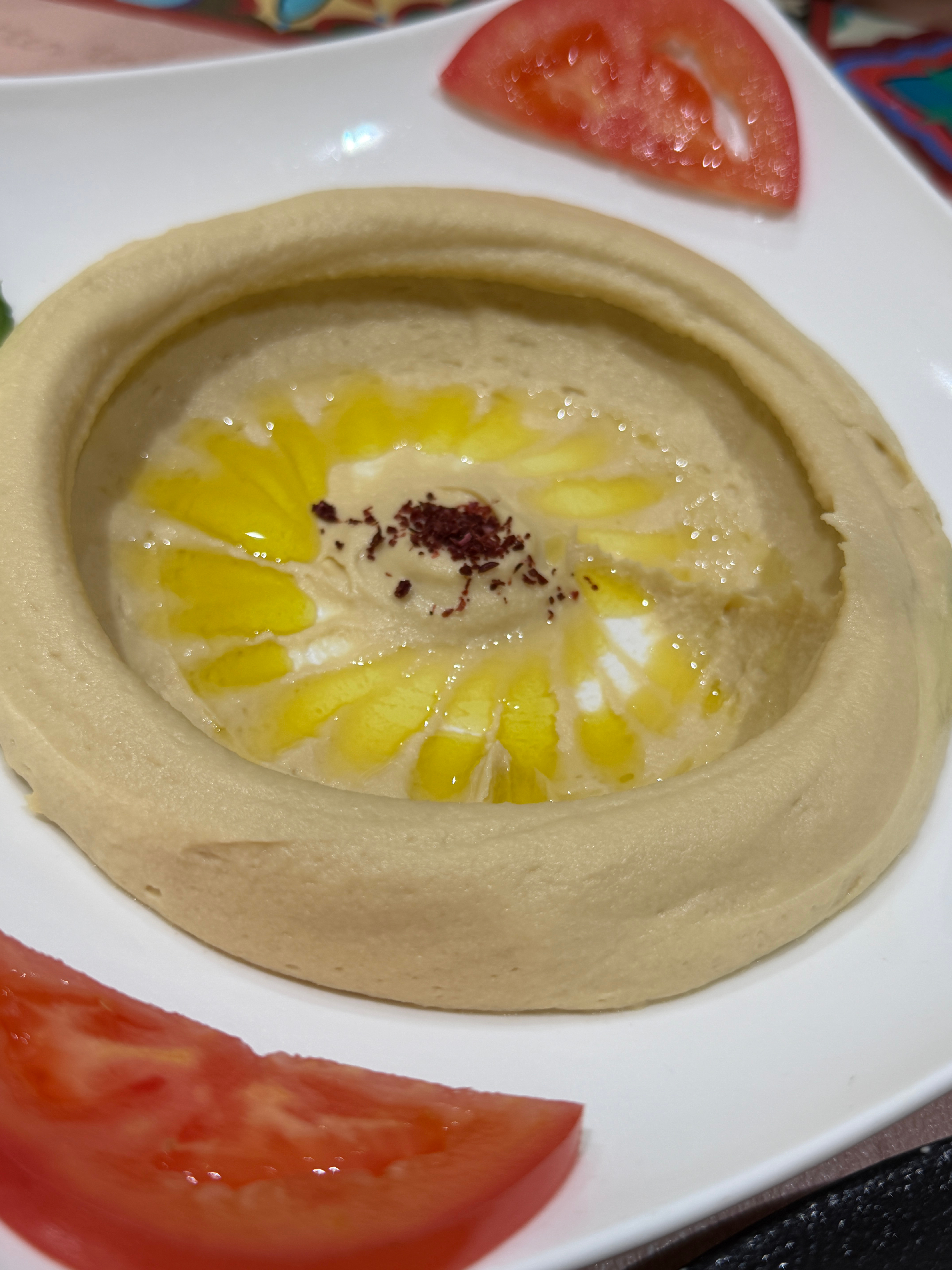 带我爽姐吃了个叙利亚菜,之前在中关村上班儿吃过一次。图4是鹰嘴豆泥加橄榄油,图3