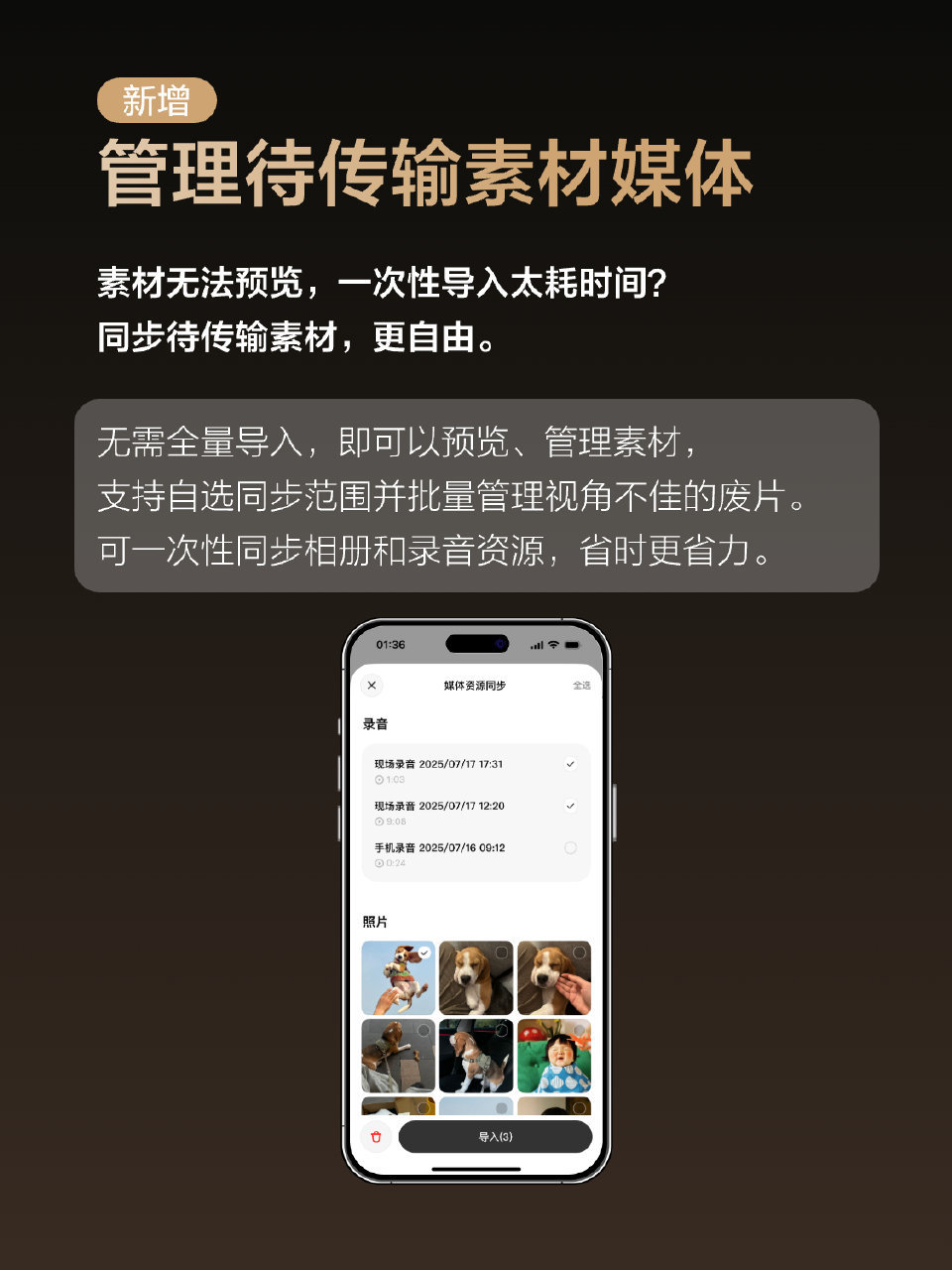 6. 管理待传输素材媒体;