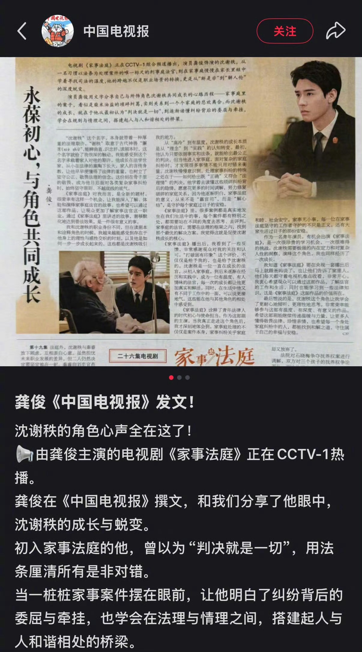 家事法庭播了之后好多人都改变了对龚俊的“固有印象”,好多路人评价“这张脸好正就适合演正剧”“很自然的演技”……看着这些好评心里特别欣慰🥺龚俊一路走来太不容易了,给我们俊永接央视,永接好班底好剧本!!✊🏻