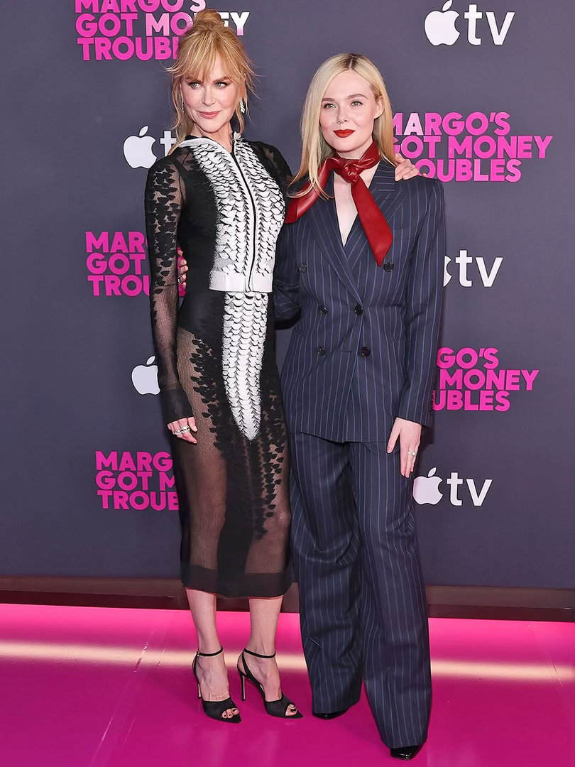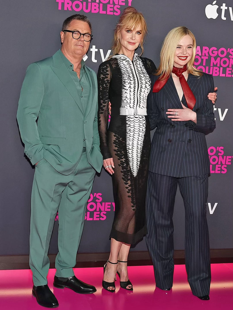 妮银幕闲话 可·基德曼、艾丽·范宁和尼克·奥弗曼抵达纽约《玛戈没钱了》首映式现场。