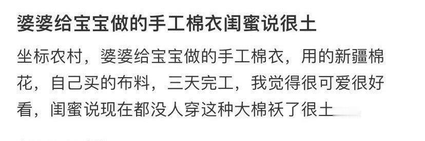 婆婆给宝宝做的手工棉衣闺蜜说很土