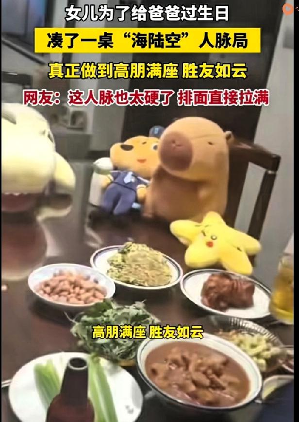 女儿一脸认真地说,这些都是来陪爸爸过生日的客人。