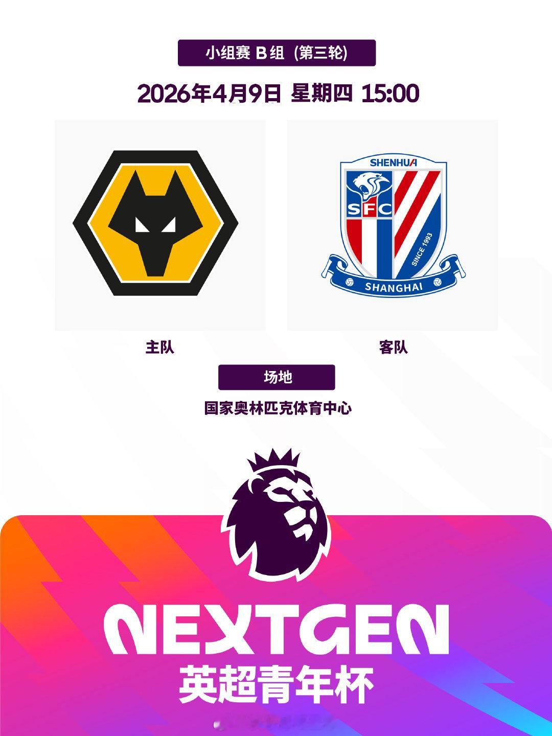 2026英超青年杯 B组第三轮,15:00即将开赛⏰️ v 上海申花中国香港精英