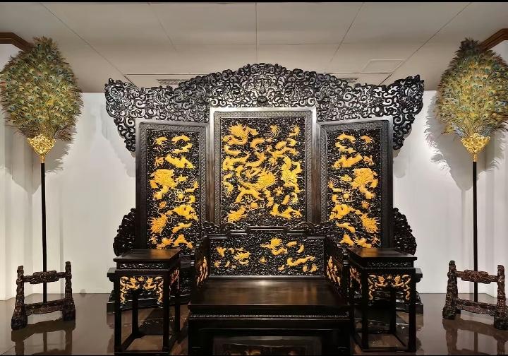 这件作品是照着故宫乾清宫的金屏风宝座1:1原样复刻的,光是看着照片,就能感受到那种皇家气派。