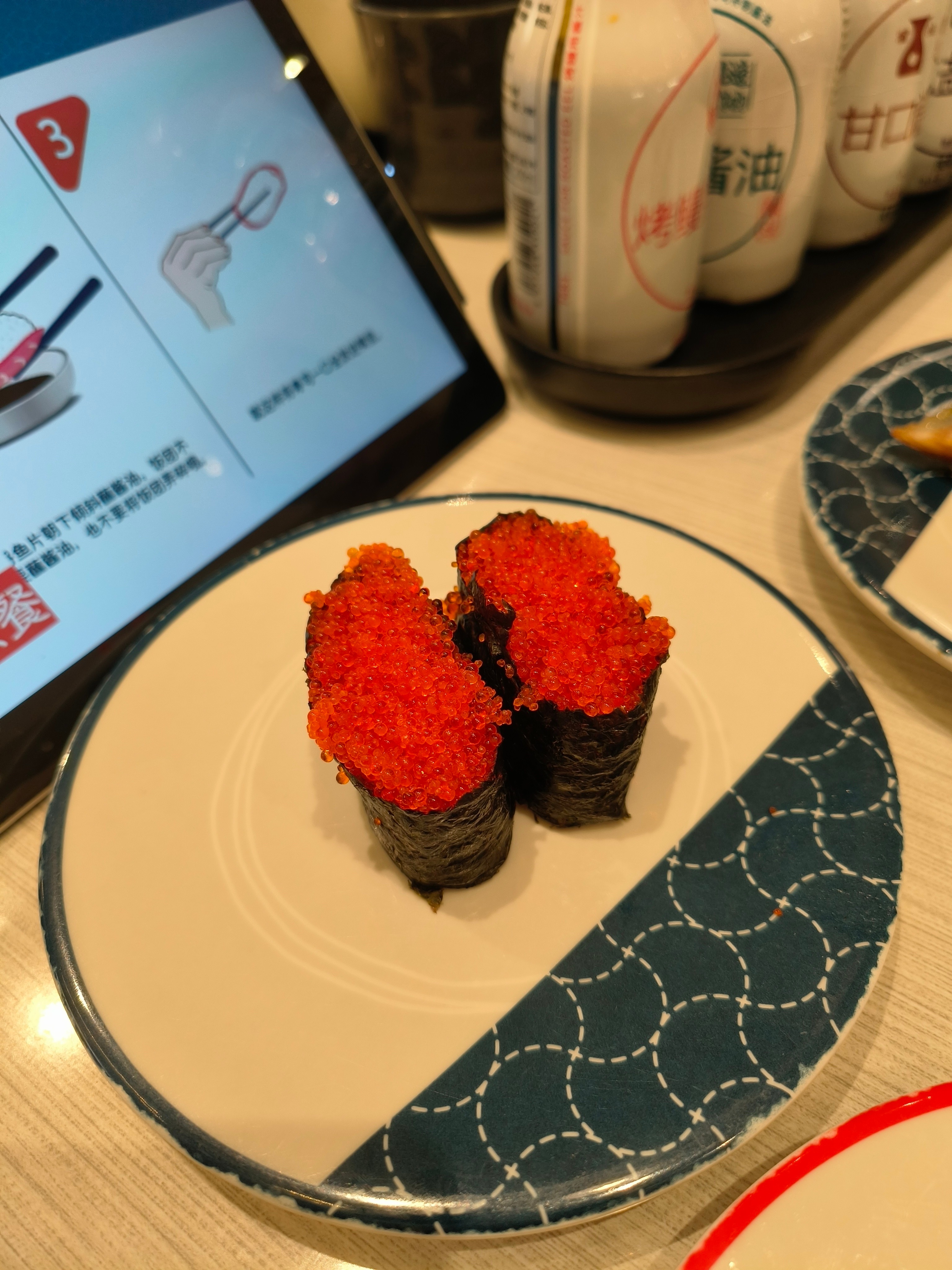 有时候赶时间,就在滨寿司点两盘飞鱼籽军舰配一份寿喜锅,十分钟搞定一顿饭,简单又满