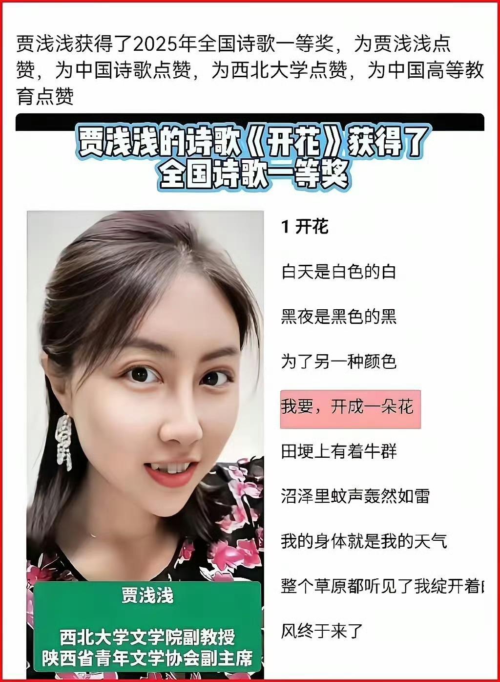 更离谱的,是写出这些令人不适作品的贾女士,居然还得了陕西青年文学奖、全国诗歌一等奖,她本人也是陕西省青年文学协会副主席,西北大学文学院副教授,