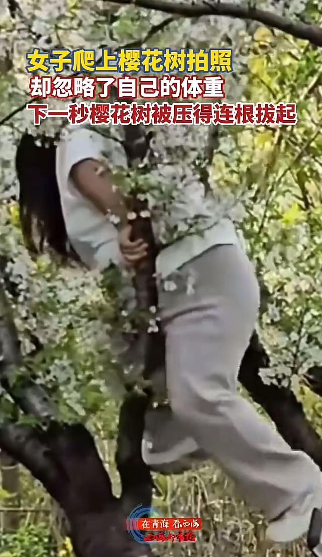 “这就是臭美的代价!”上海,女子上树拍照,压倒20多年樱花树,被要求赔偿!网友:出没出片不知道,但肯定出事了!这树可不便宜!