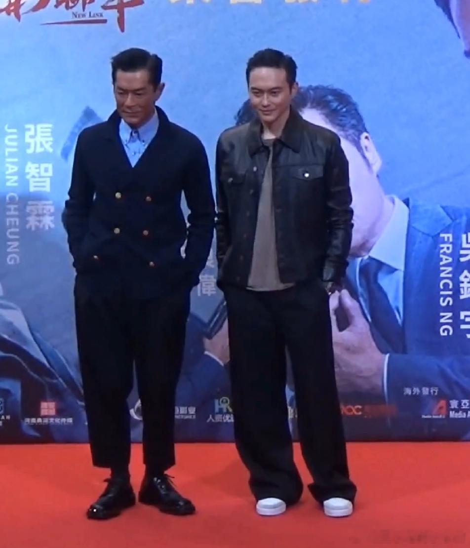 看派头和气场,古天乐像大哥,刘德华倒像是小弟,古天乐站C,一手抄裤兜,十分气派,