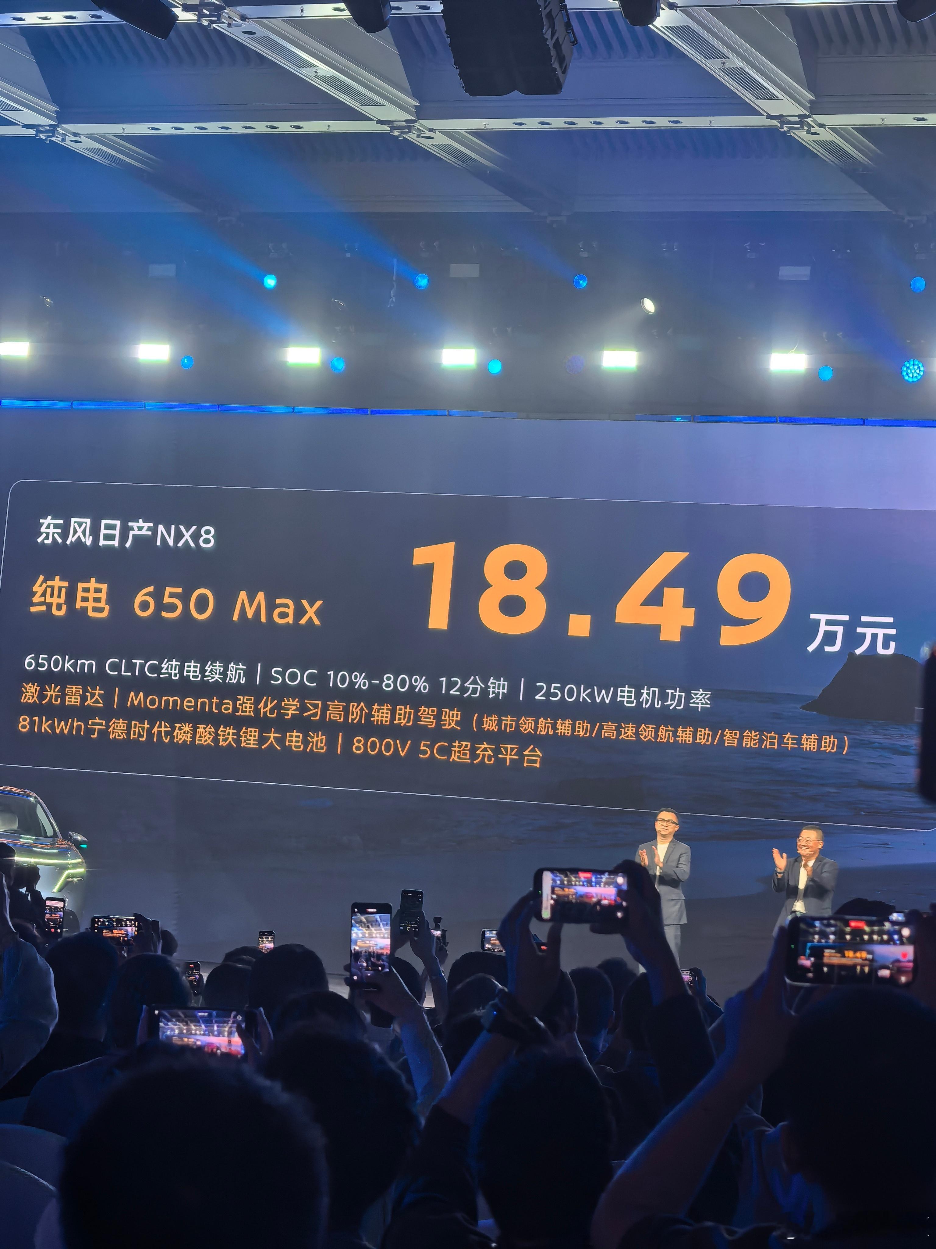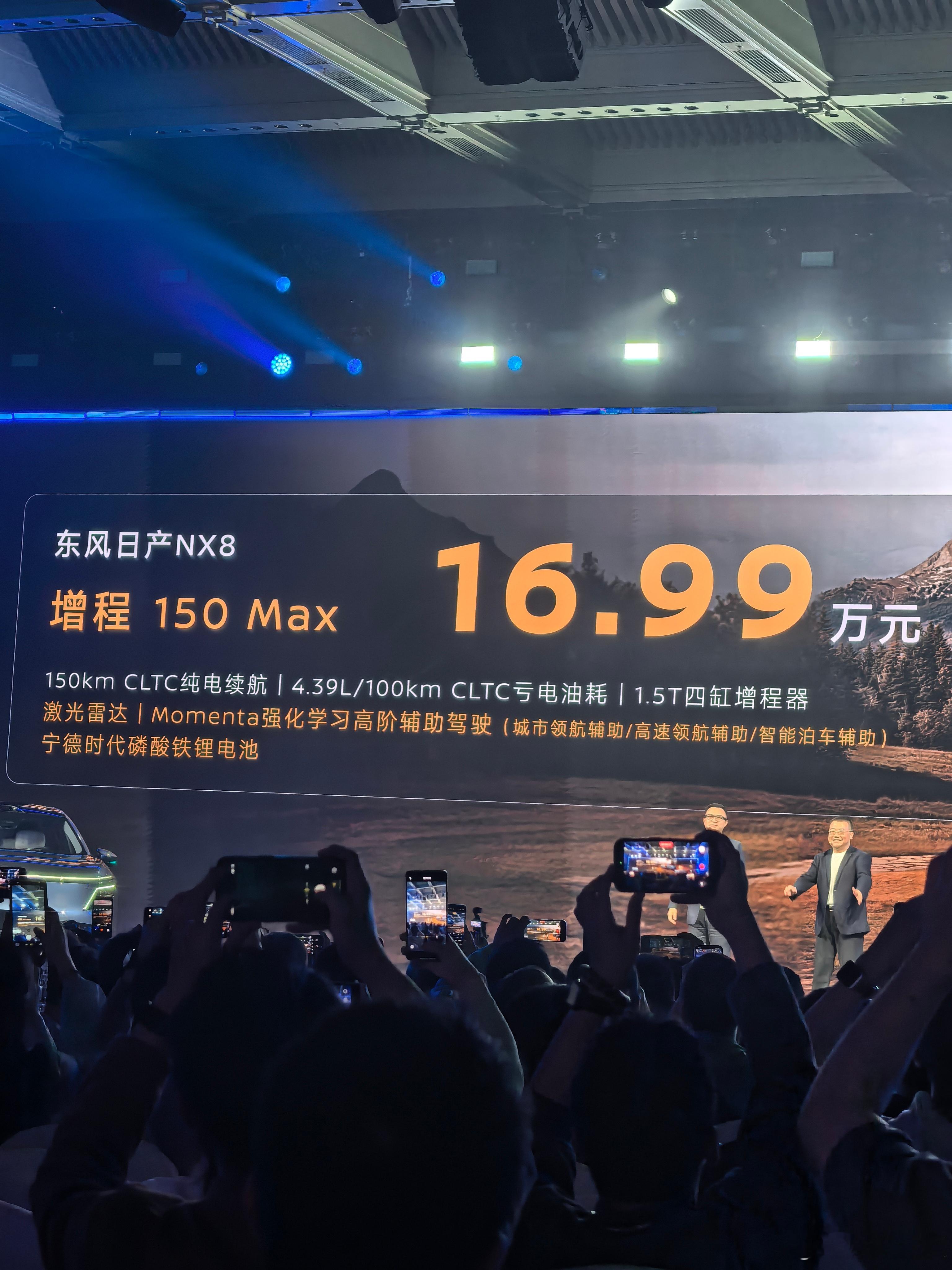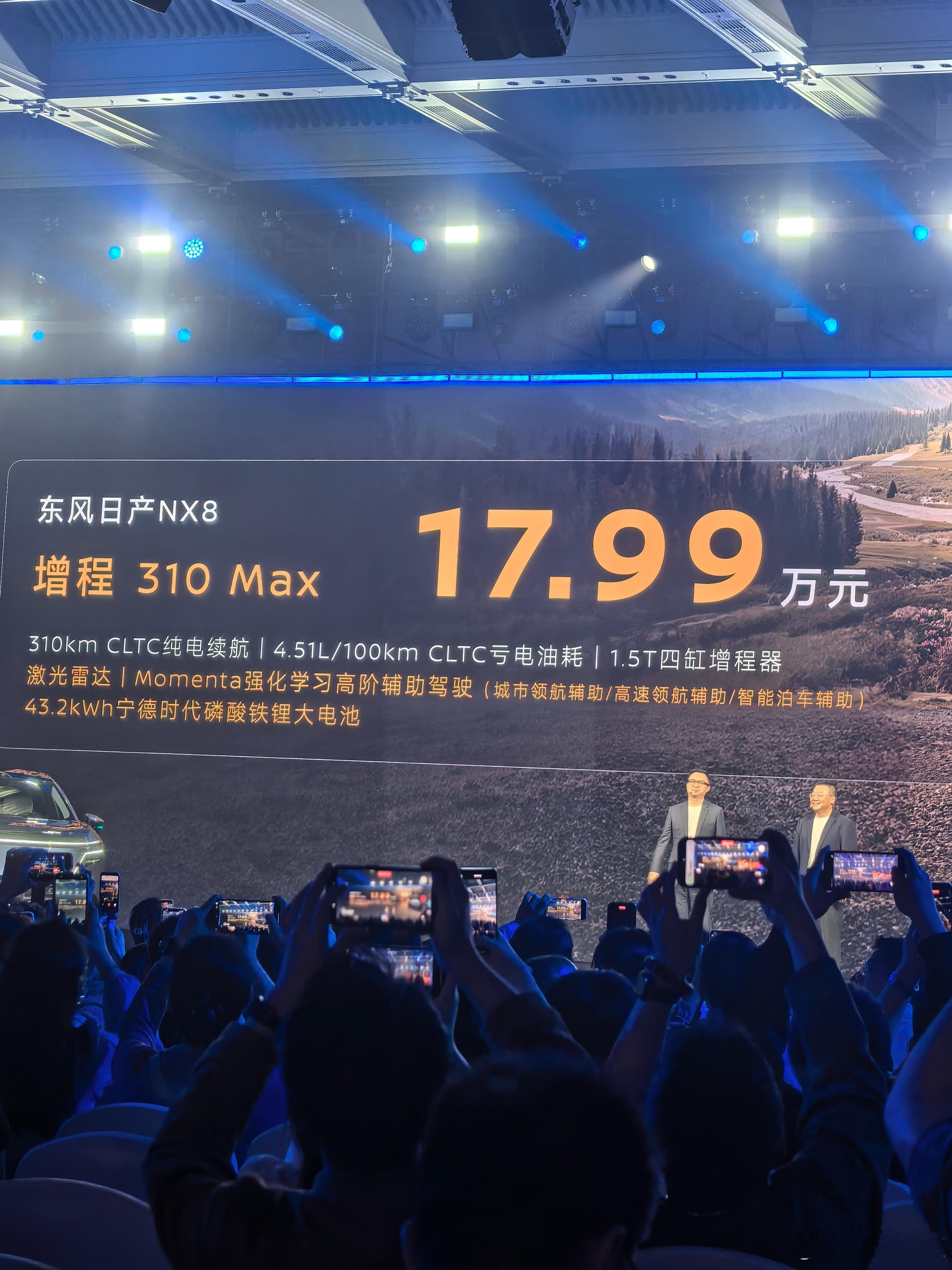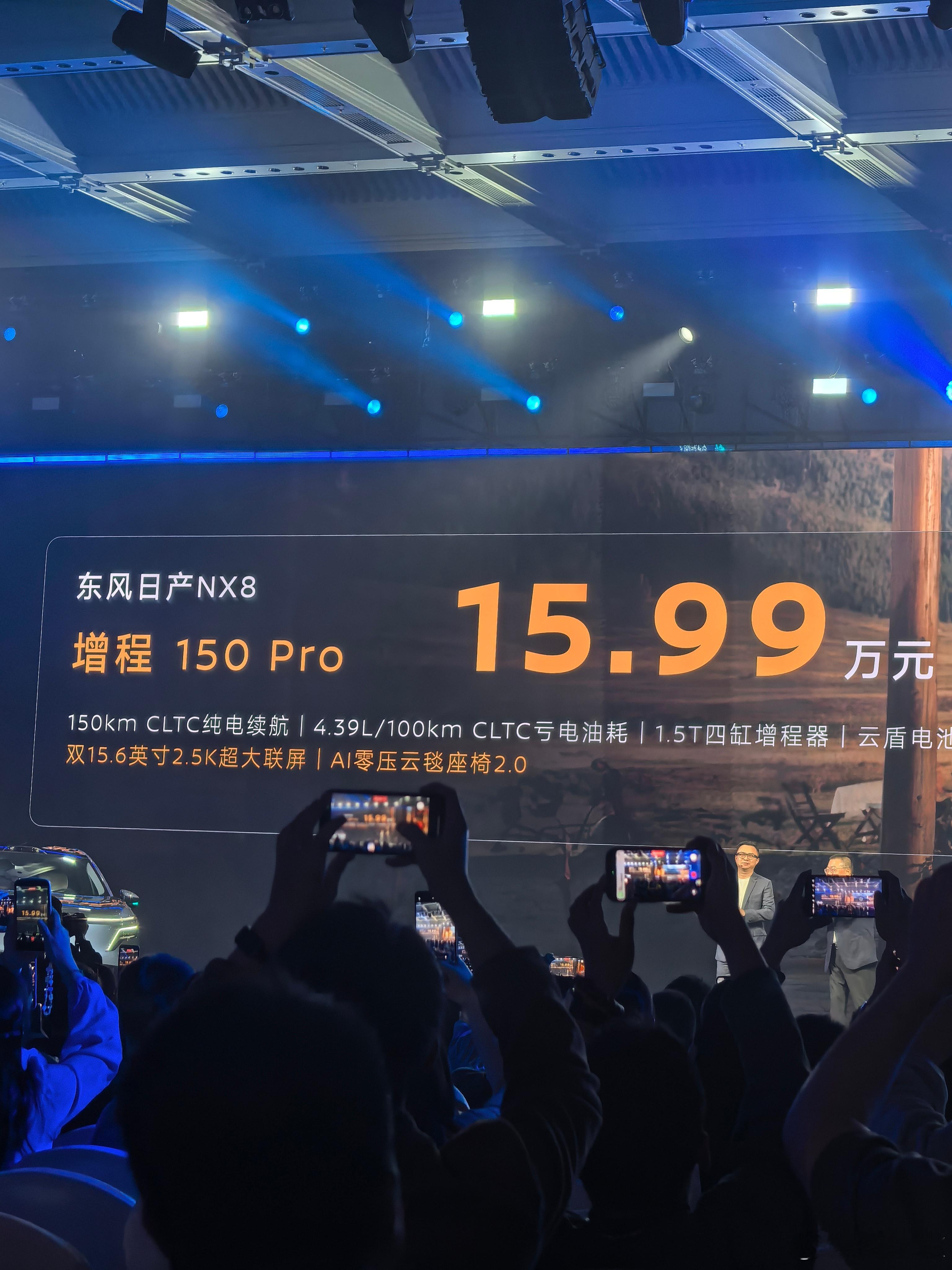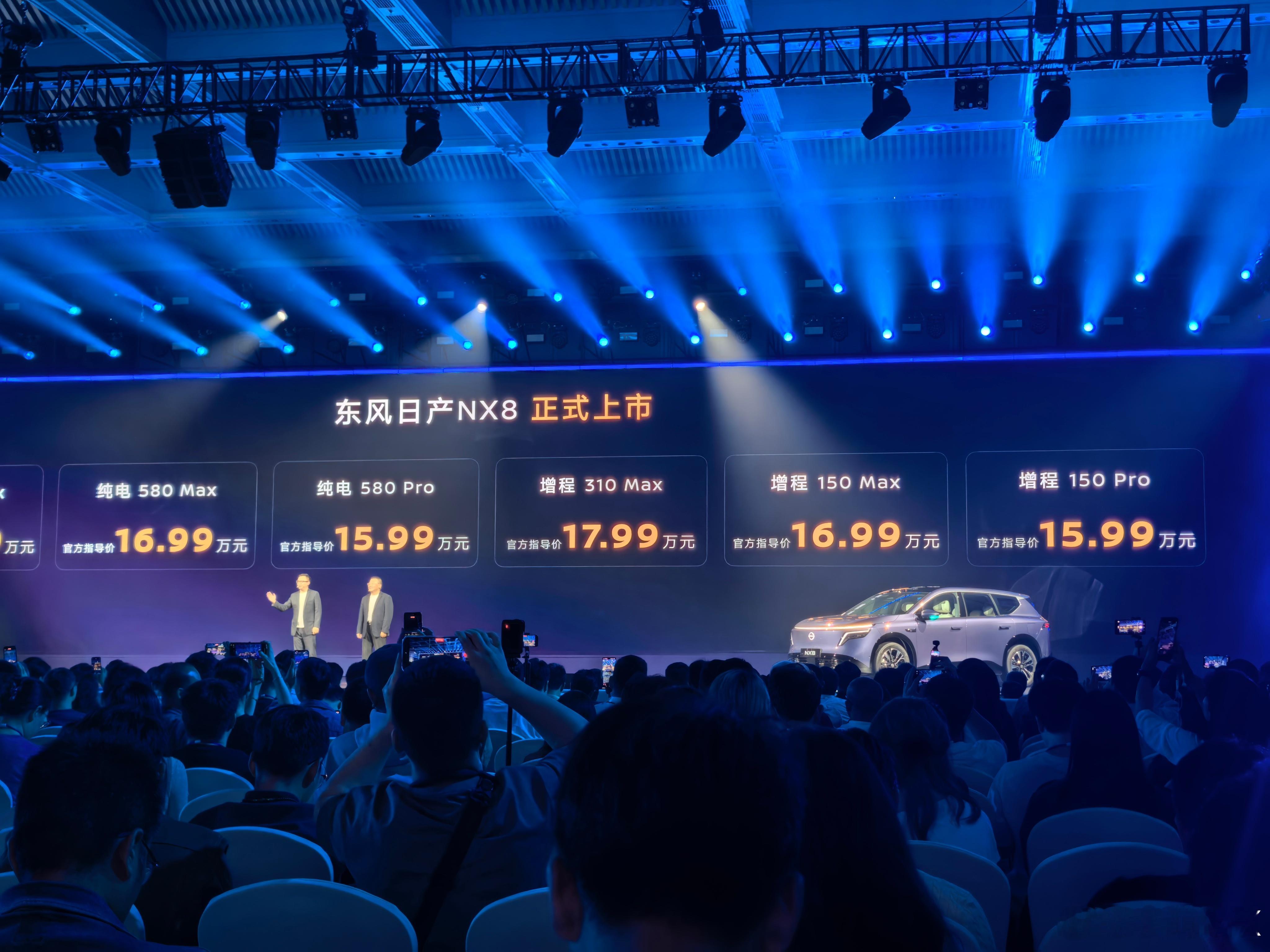 今天东风日产NX8 的发布会节奏相当可以,上来直接讲配置,发布价格发布会开始15分钟价格来了增程310Max 17.99万、150Max 16.99万、150Pro 15.99万纯电650Max 18.49万、580Max 16.99万元、580Pro 15.99万元限时1万置换补贴,16888的沙发免费送,太强了大大大五座NX8售14.99万起