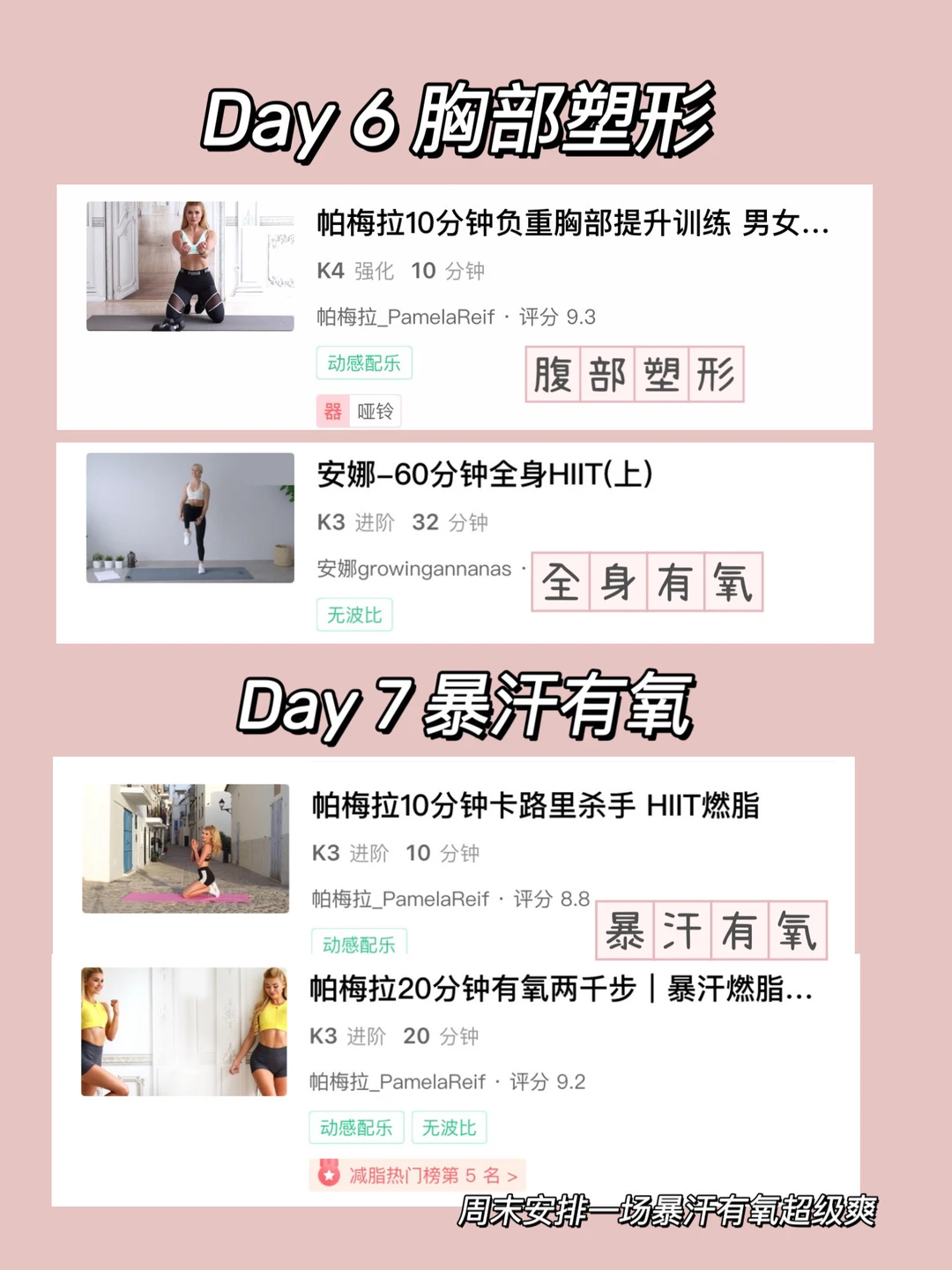 从绿色开始,一周六练自己安排组合