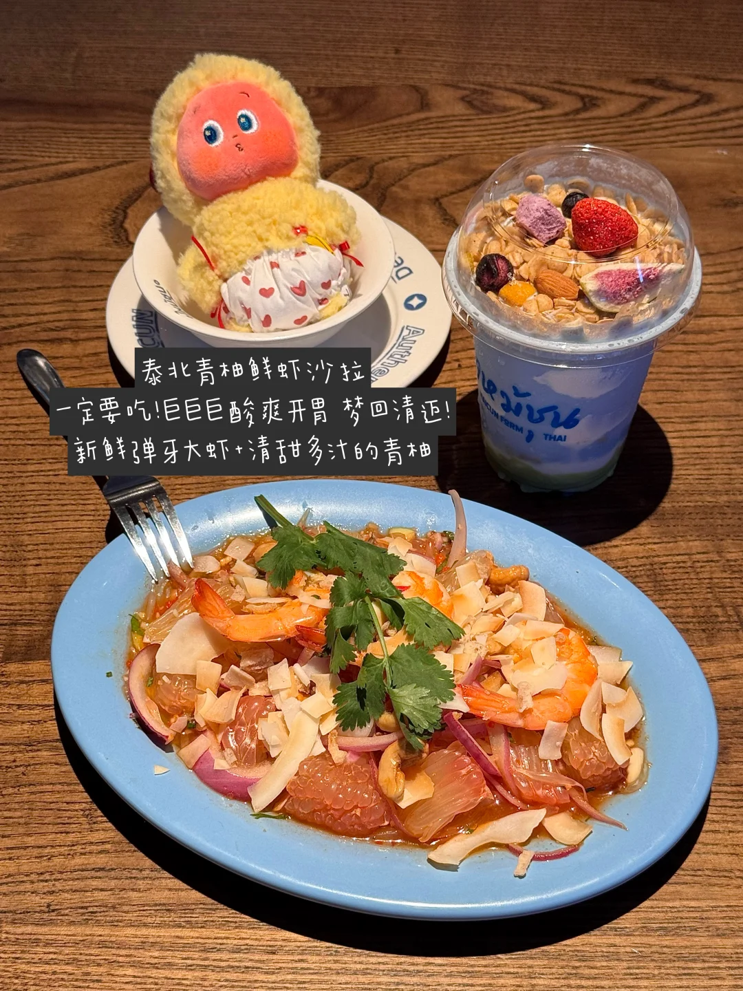 ✔️小吃:泰北青柚鲜虾沙拉/斑斓椰子卷/四色芒果糯米饭