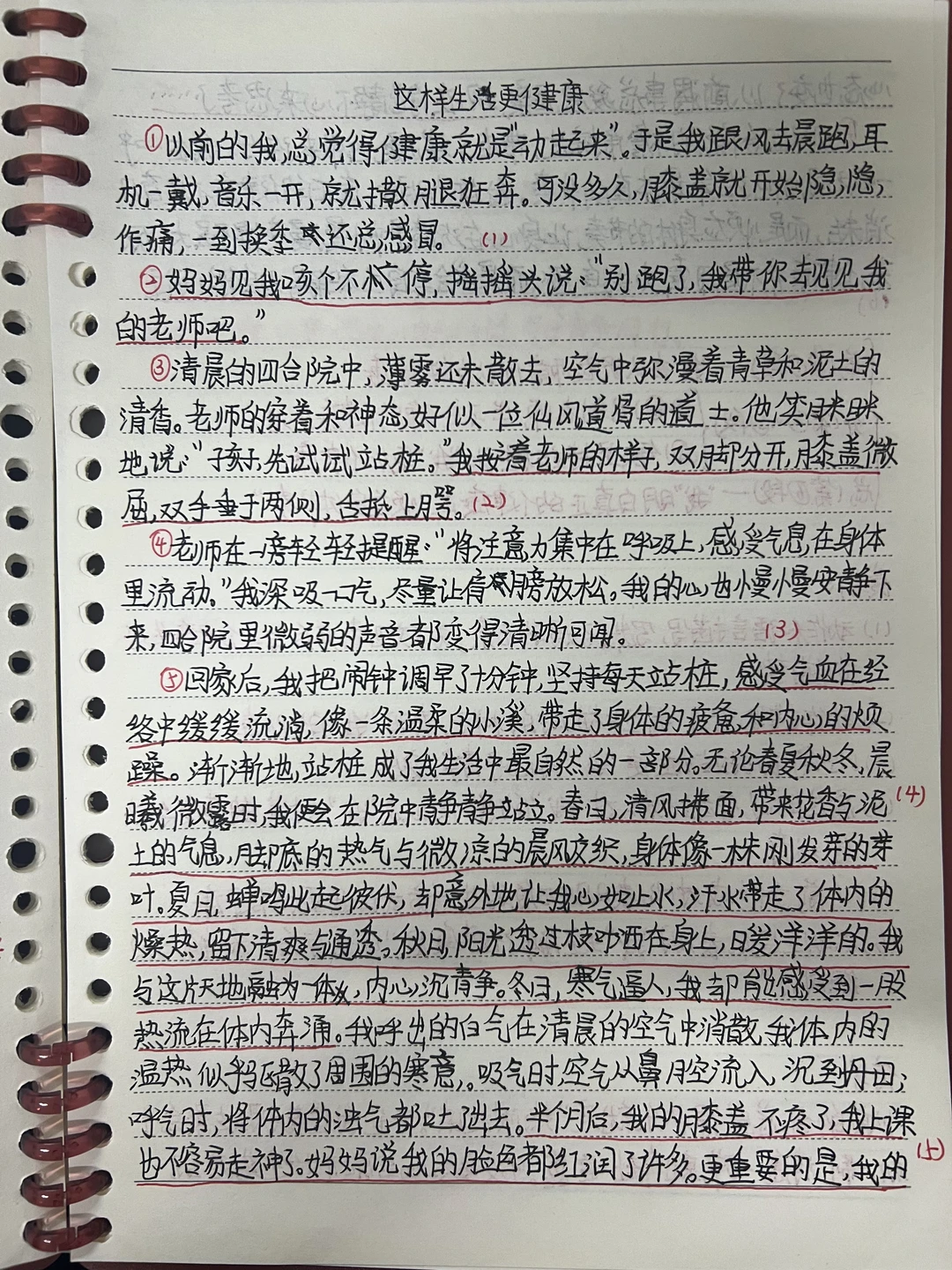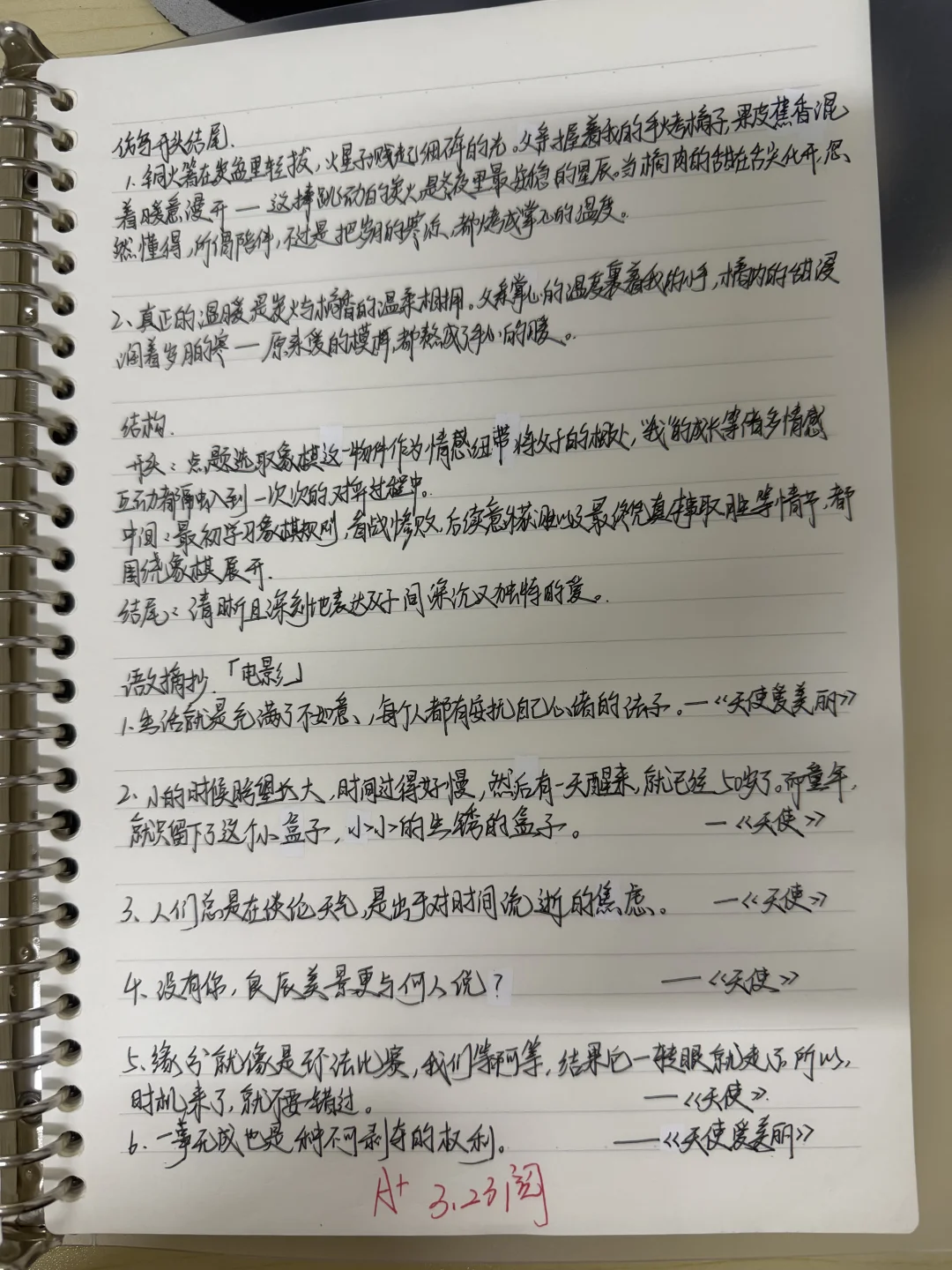 3️⃣作文专项复习贯穿始终:单周摘抄全国优秀范文,双周写大作文(有考试则把考试作文誊写在大作文本上),一周一到两篇小作文