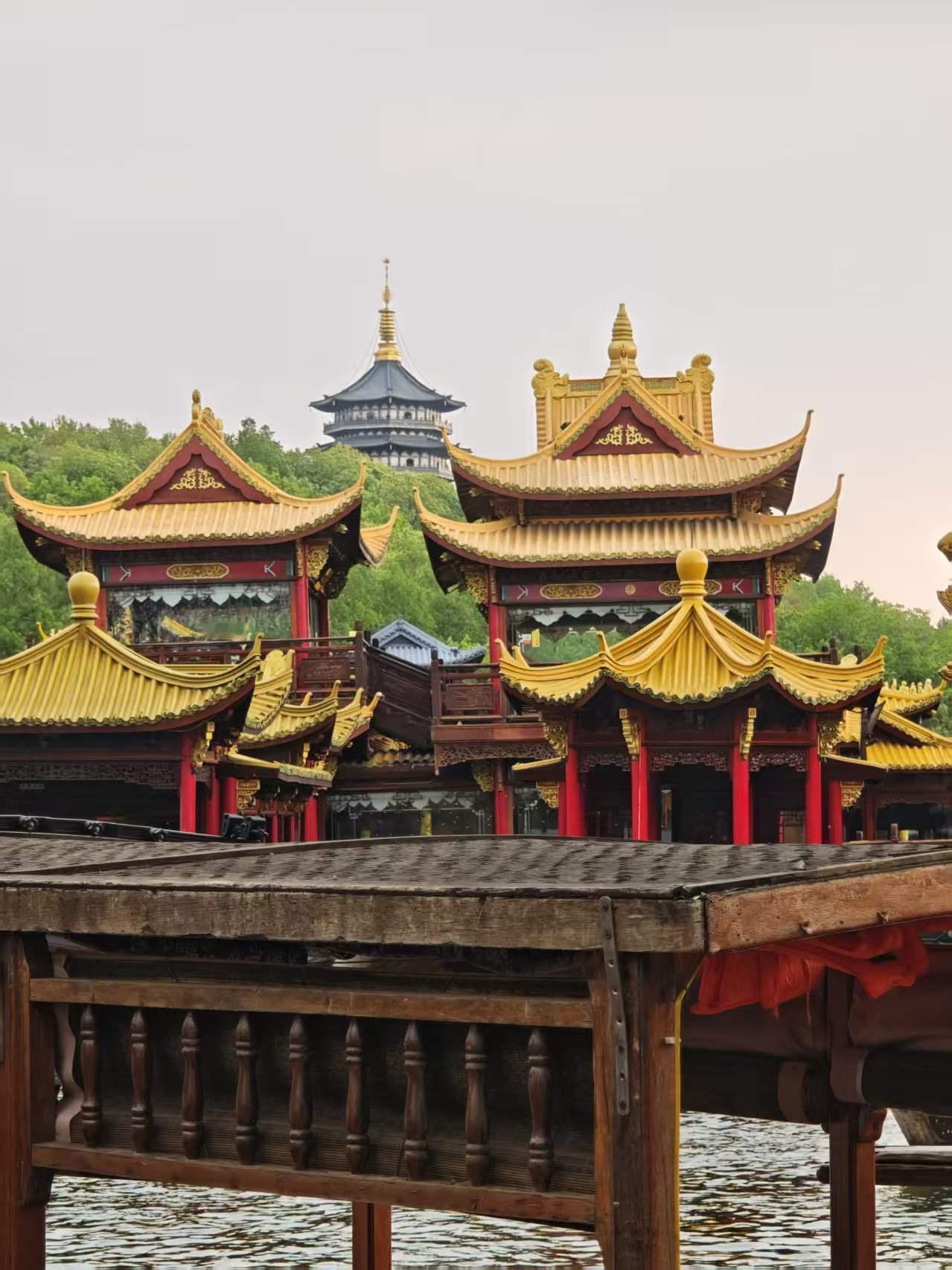 分享一下你随手拍下的照片花中之王谁与比,雷峰年金顶立湖边。龙船遨游碧湖中,西子湖
