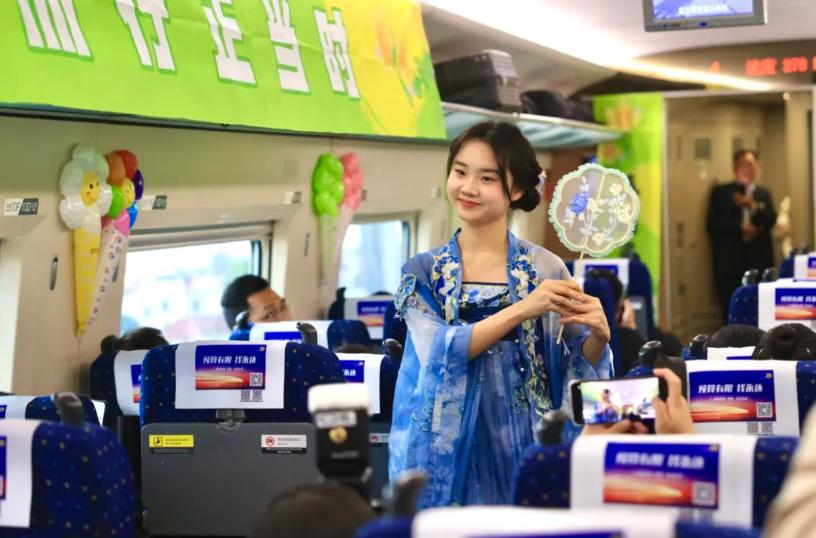 首发信息:G5003次列车从景德镇北站出发,前往赣南闽西地区,是南铁今年3月精心打造的“赏花列车”之一。