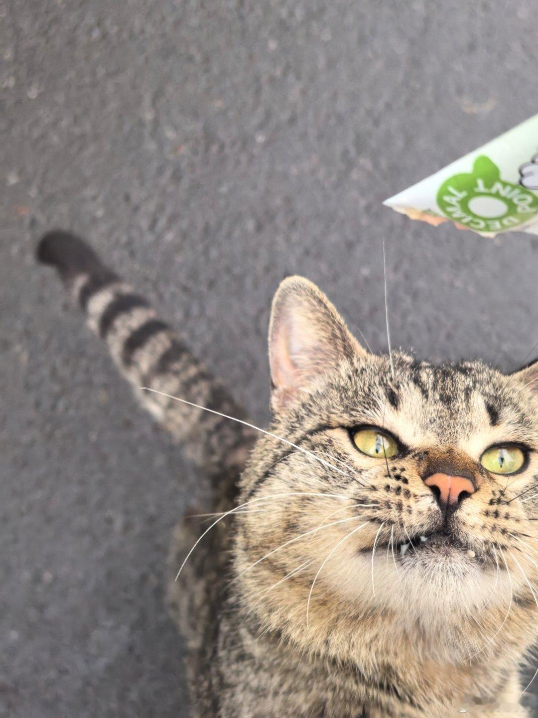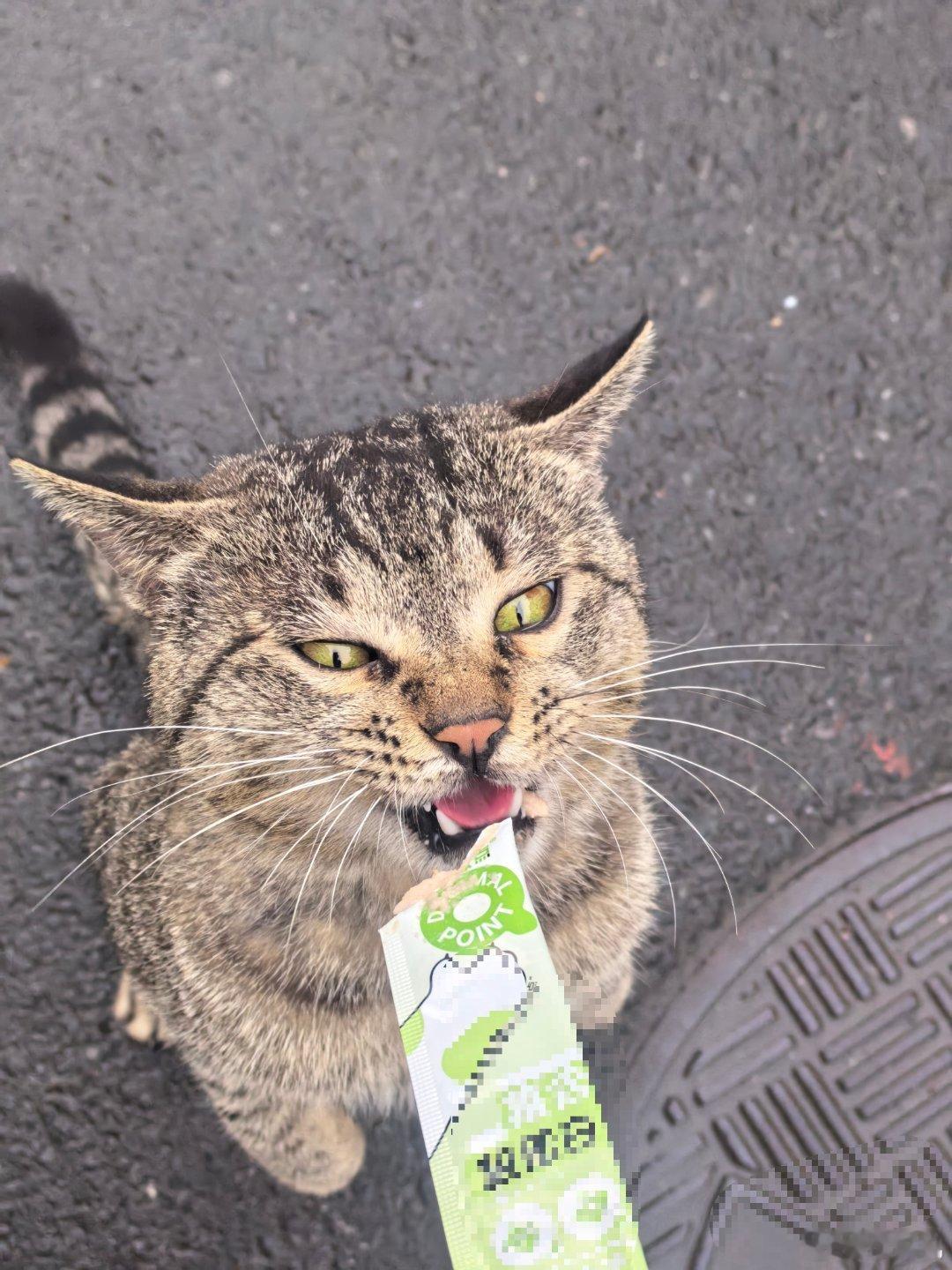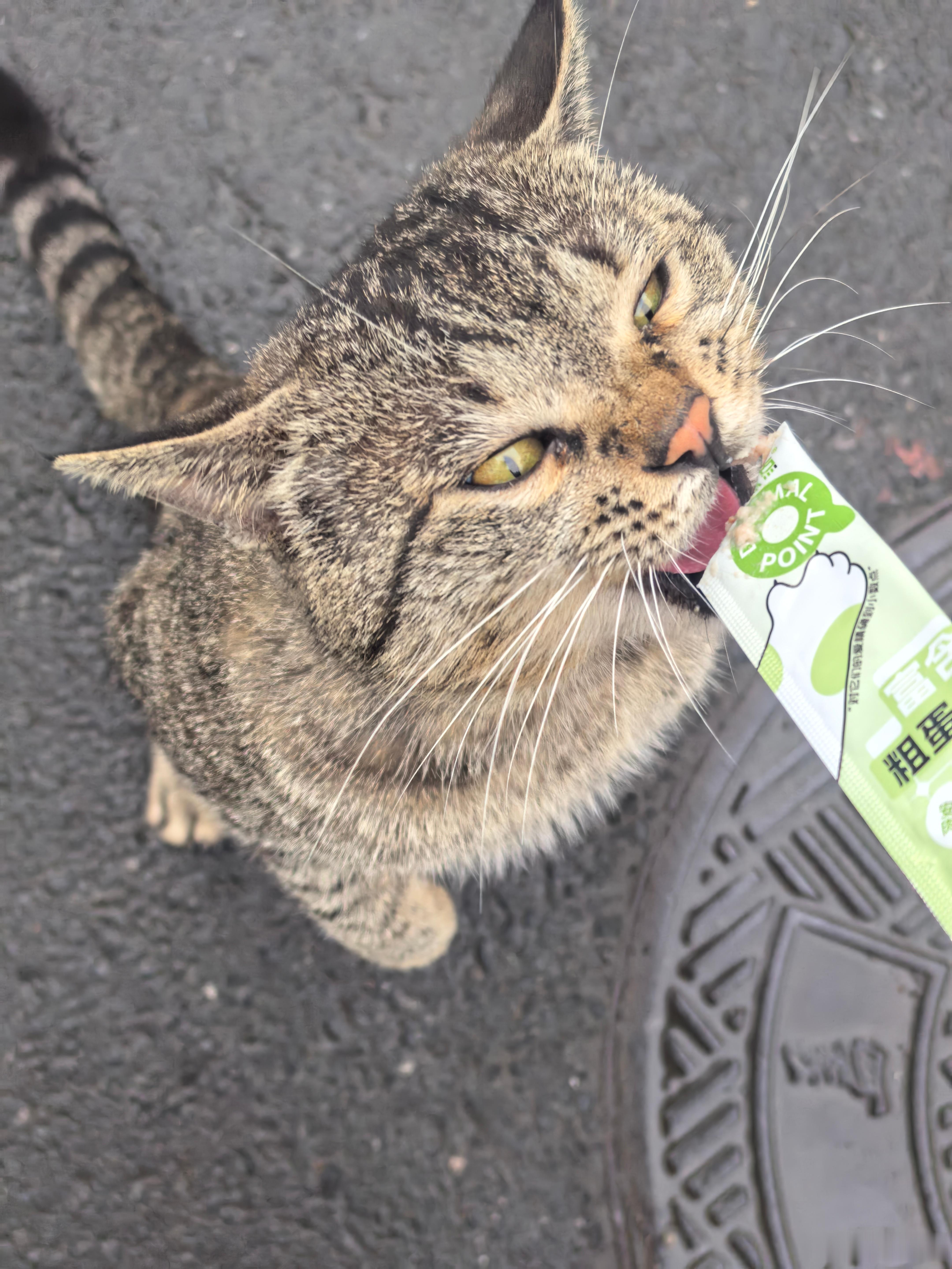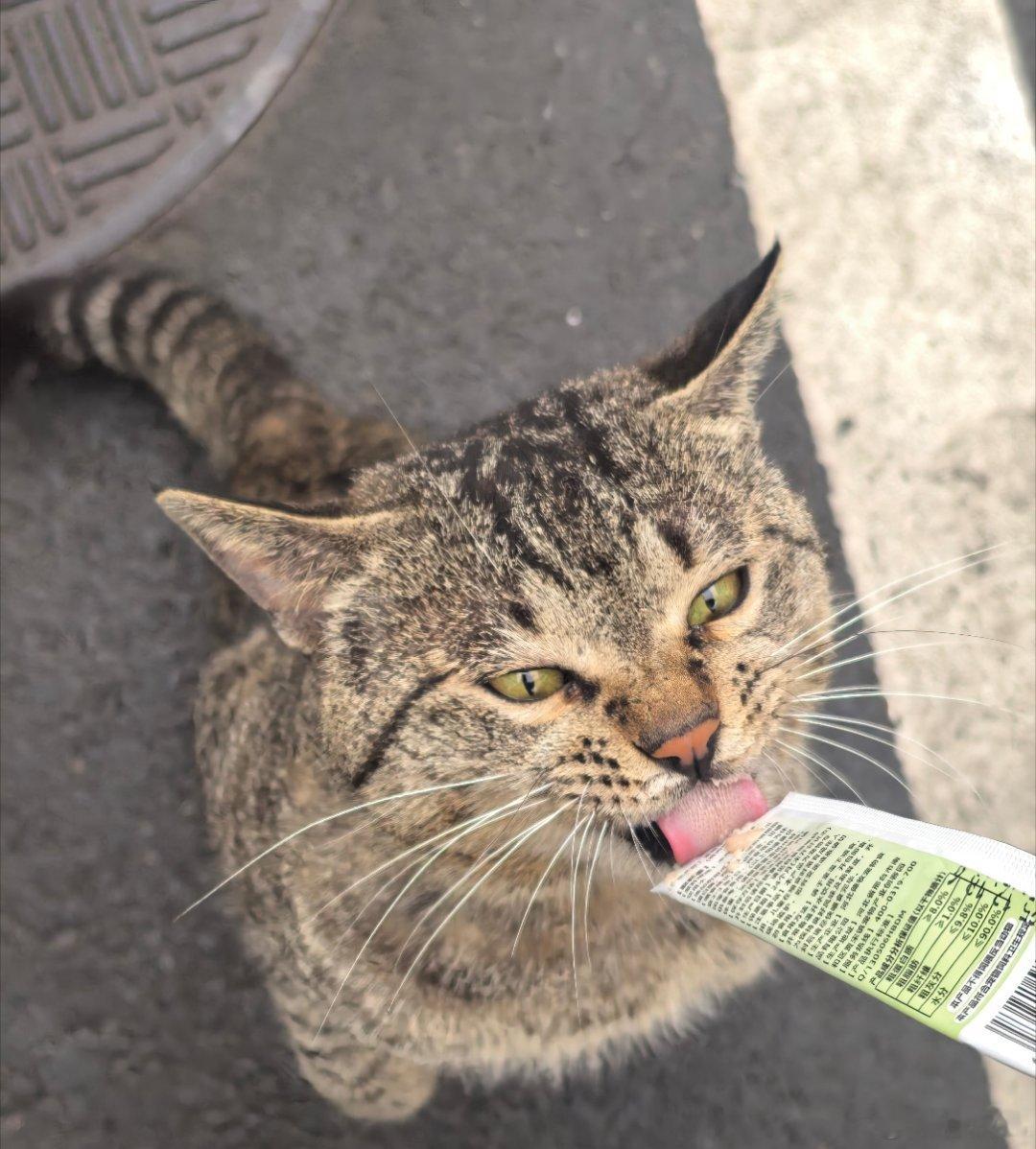 本猫条侠又成功俘获一只小猫的芳心这只猫还想抓鸟,我拿出猫条,要不吃点猫条算了,放过小鸟,猫同意了 (随身携带猫条,随时随地勾搭猫猫狗狗)