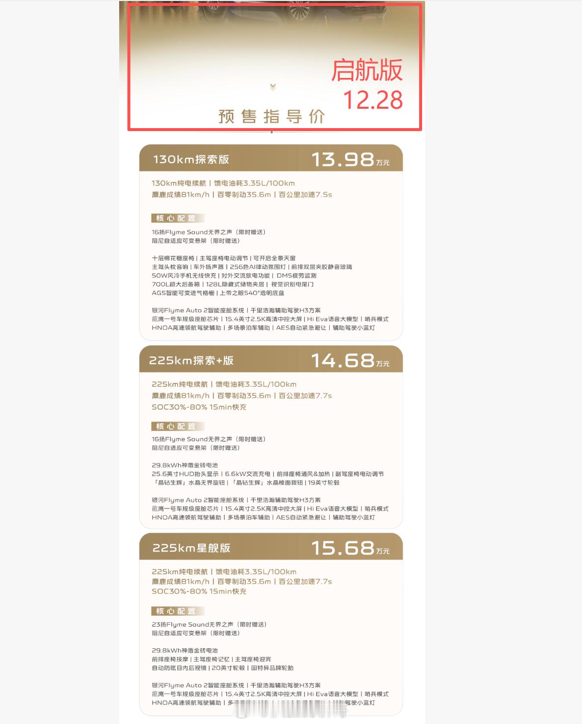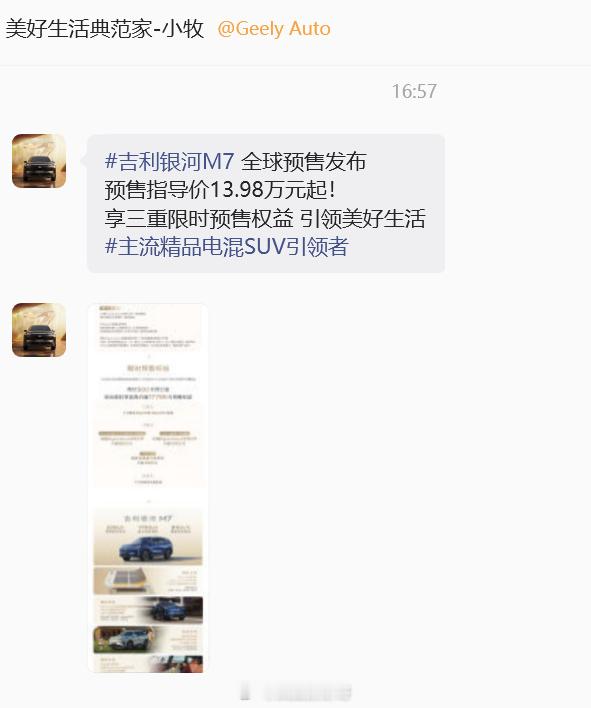今天吉利银河M7的预售我看了下,应该还有惊喜。因为SKU不可能只有3个吧?按照银