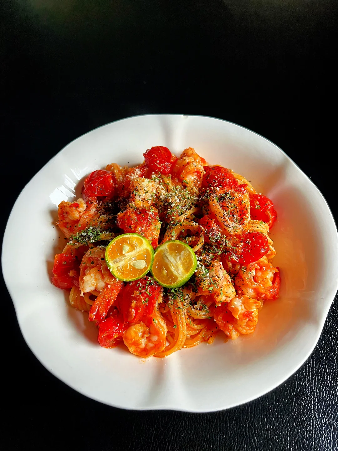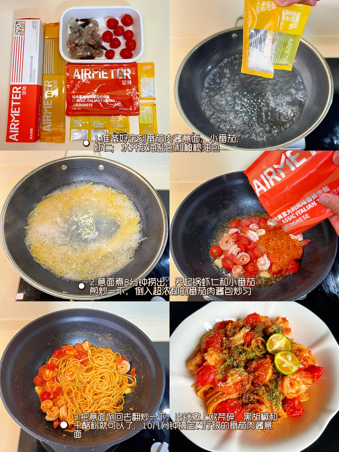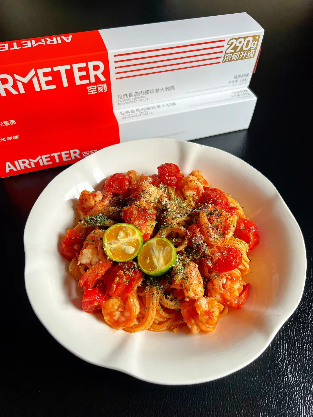 [星R][星R]空刻意面的肉酱份量真的好足!自带7包料,随便做都好吃,简单加了点小番茄和虾仁就很丰盛!10分钟搞定西餐厅同款意面!