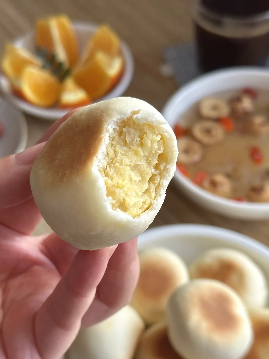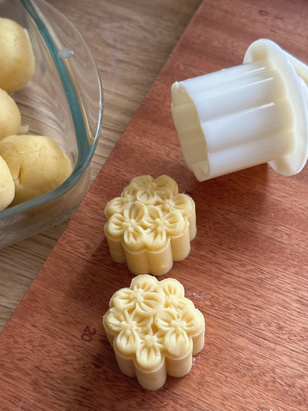 多的绿豆馅还用月饼模具压了几朵花造型,空口吃馅其实也不错。