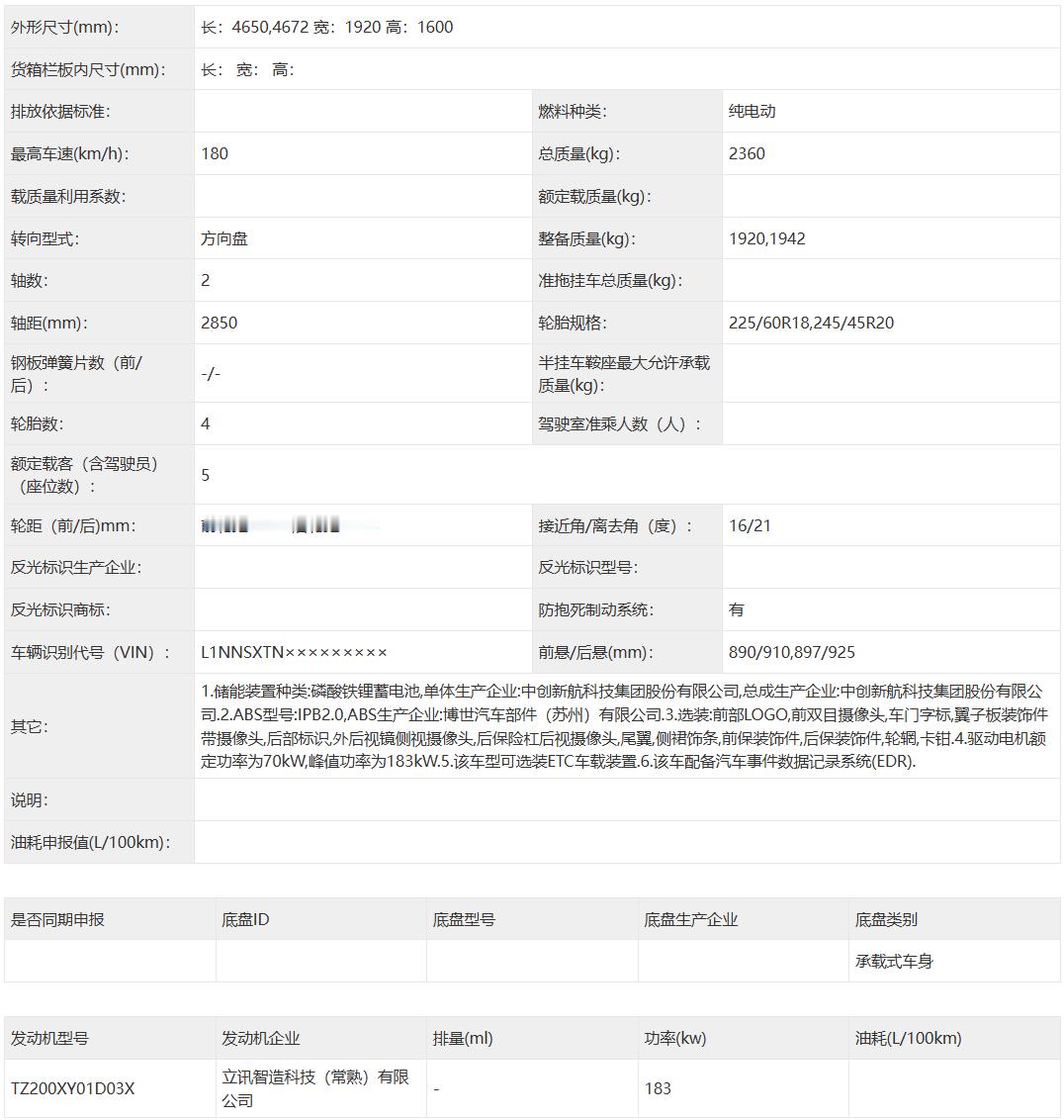长x宽x高:4650,4672x1920x1600,轴距2850