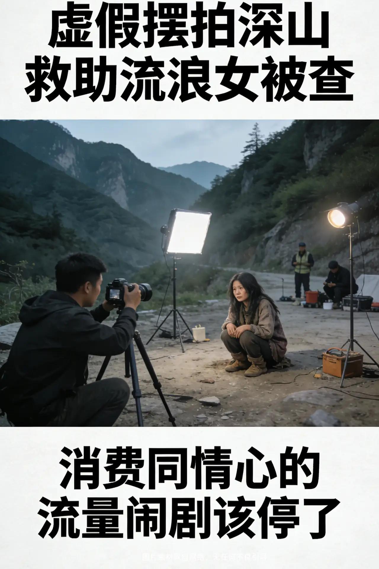 视频里的蓬头垢面、衣衫破旧,是提前化好的妆;深山木屋是临时搭的景;蜷缩无助的流浪女,竟是花钱雇来的演员。两个拍摄者从黑龙江千里奔赴丽江,照着写好的剧本,一遍遍拍“偶遇”“送温暖”,把网友的同情心当成涨粉变现的工具。