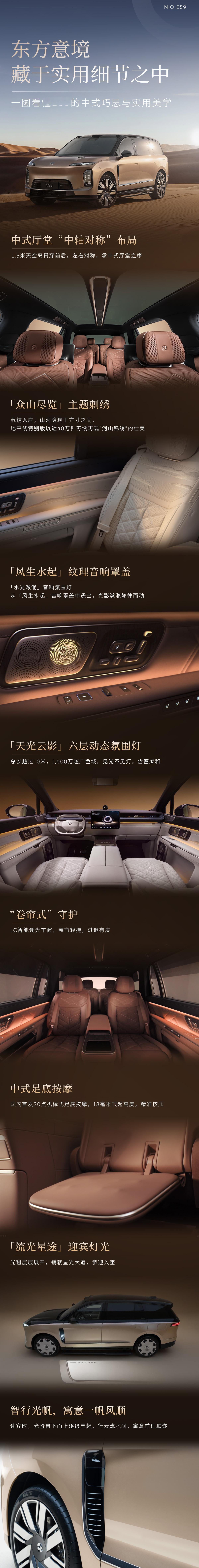 旗舰车型就得有拿得出手的原创设计!蔚来从一开始就把原创当核心。作为蔚来的旗舰SUV,ES9延续了这份坚持,它的原创设计不只是好看,更体现了品牌的实力和精神内核,也印证了:想做旗舰,原创设计是根本。ES9的原创不只是外观和内饰设计,还有10和原创亮点,更厉害的是背后的硬核技术——比如行业领先的900V高压架构、主动悬架、线控转向系统,还有自研的芯片和操作系统。这些技术搭配上实用的功能,比如11种开门方式、隐私玻璃、足底按摩、智能地形模式,让用车体验直接拉满,重新定义了什么是高端豪华。蔚来ES9的每一处细节,都藏着咱们中国人的审美和情怀。不管是配色、布局,还是灯光、纹理,都把东方传统和现代科技融到了一起,既有咱们独有的人文味儿,又能体现出顶尖的技术实力。蔚来ES9中国元素