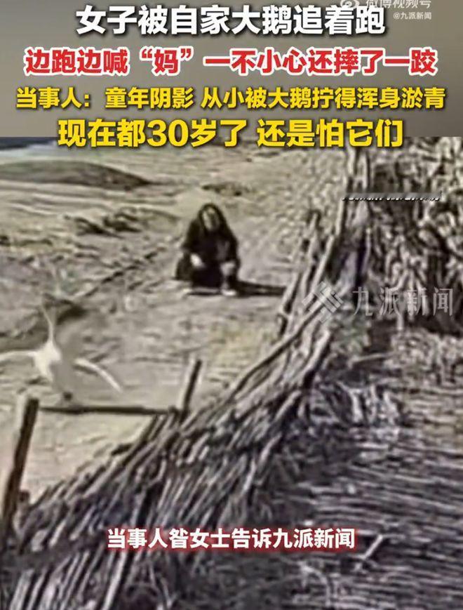 “太狼狈了!”辽宁盘锦,30岁的昝女士刚迈出家门,就被自家养的大公鹅死死盯上,吓得她一边大喊着“妈呀”一边狂奔,结果脚下一滑重重摔了一跤!更气人的是,大鹅看她摔倒,竟开心地挥舞着翅膀大摇大摆地走了,简直是伤害性不高、侮辱性极强。原来,家里的一只母鹅受了伤,三只公鹅瞬间进入了“暴走护花”模式,把昝女士当成了假想敌,硬生生把她逼出了童年阴影。